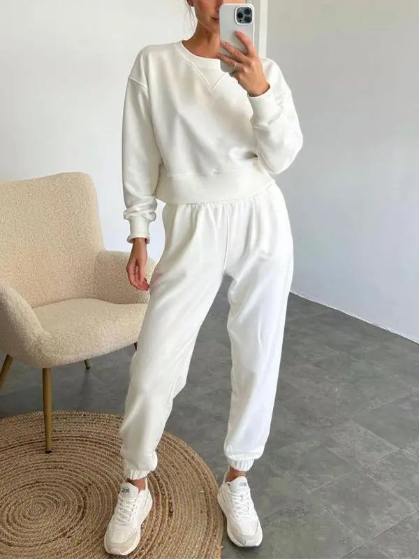 Women's Round Neck Solid Color Sports Two-piece Suit