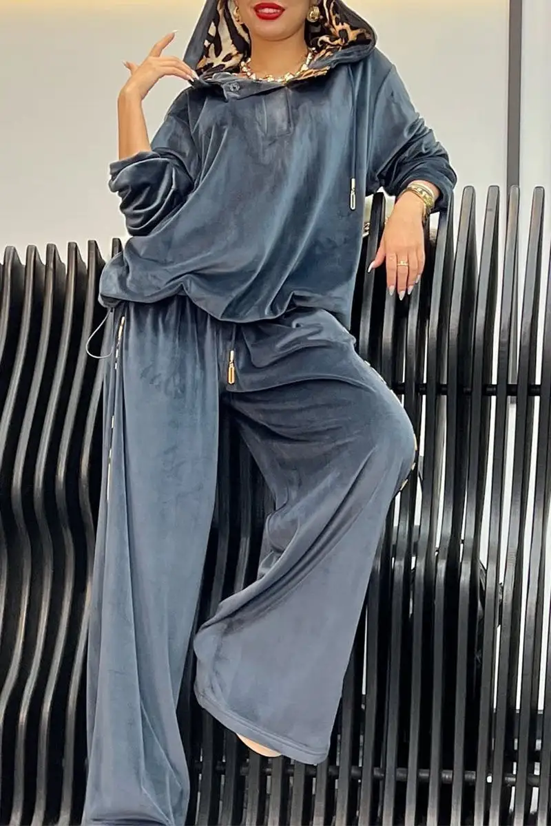 Women's Leopard Print Hoodies and Pants Set