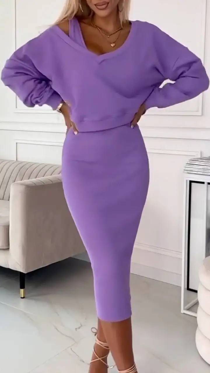 Women's V-neck Solid Color Casual Dress Suit