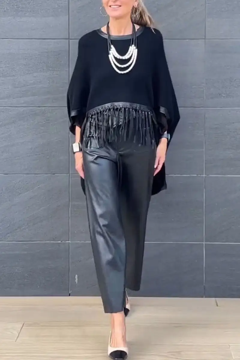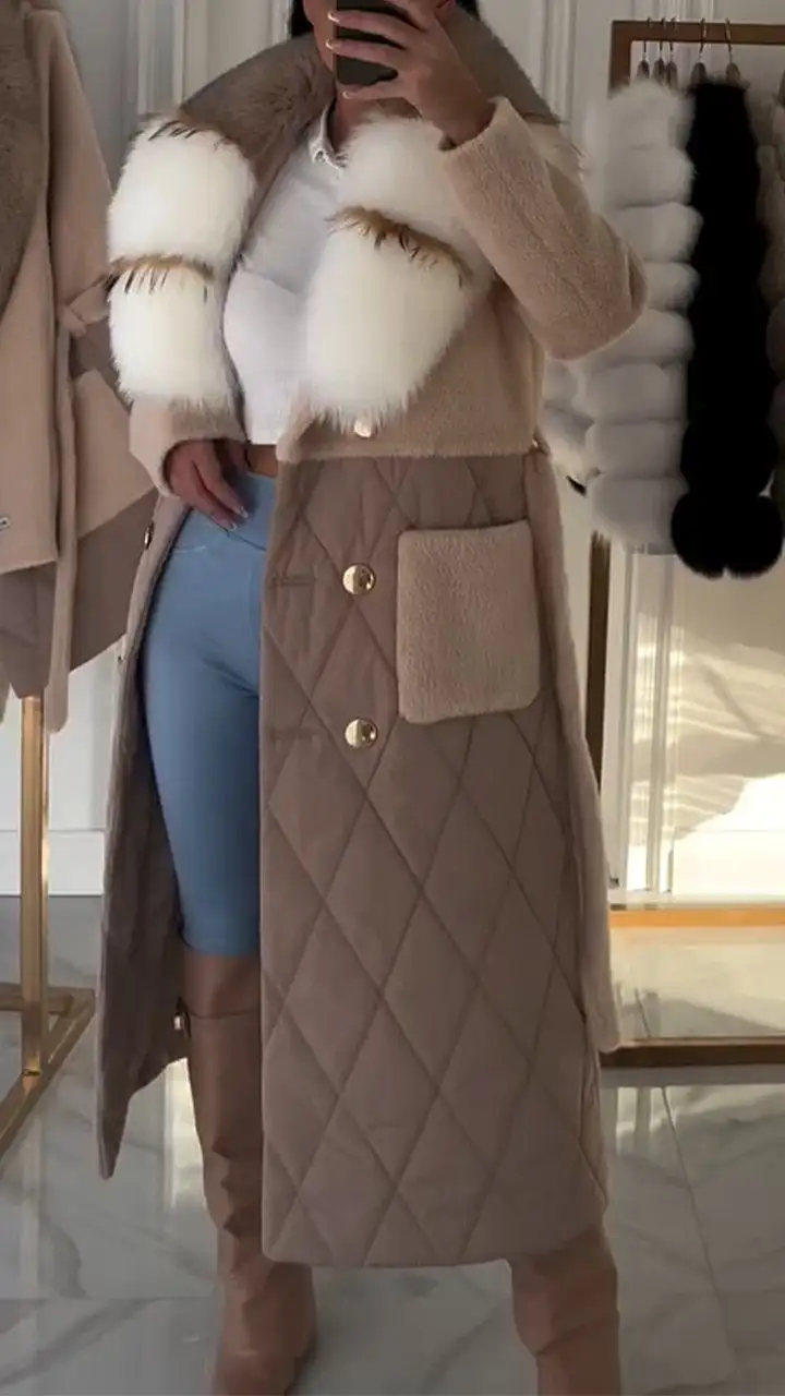 Women's Large Lapel Fur Patchwork Sleeves Contrast Color Long Coat