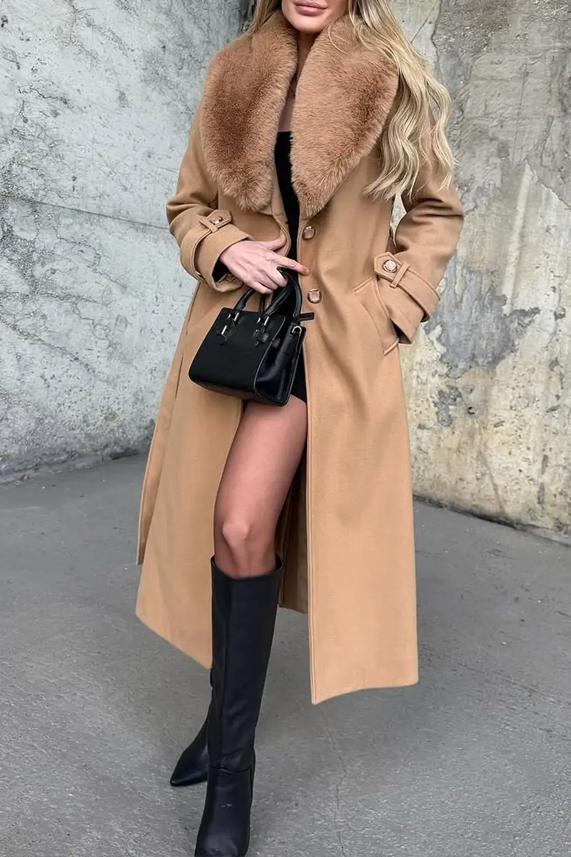 Women's Fashion Warm Fur Lapel Long Woolen Coat