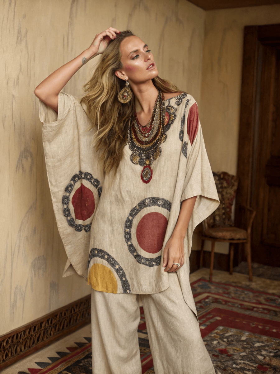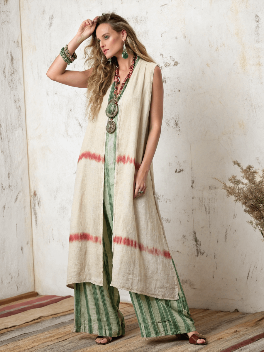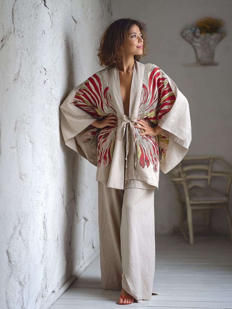 Kimono Bamboo Whisper Linen Tie-strap Top and trousers Two Piece Set