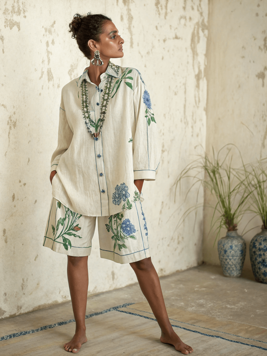 Cotton and linen women's shirt and shorts set