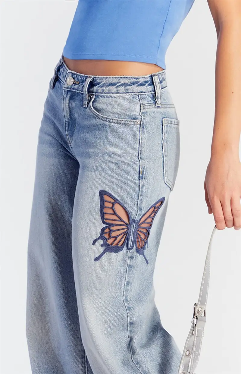 Casey Low Rise Baggy Jeans Butterfly Applique