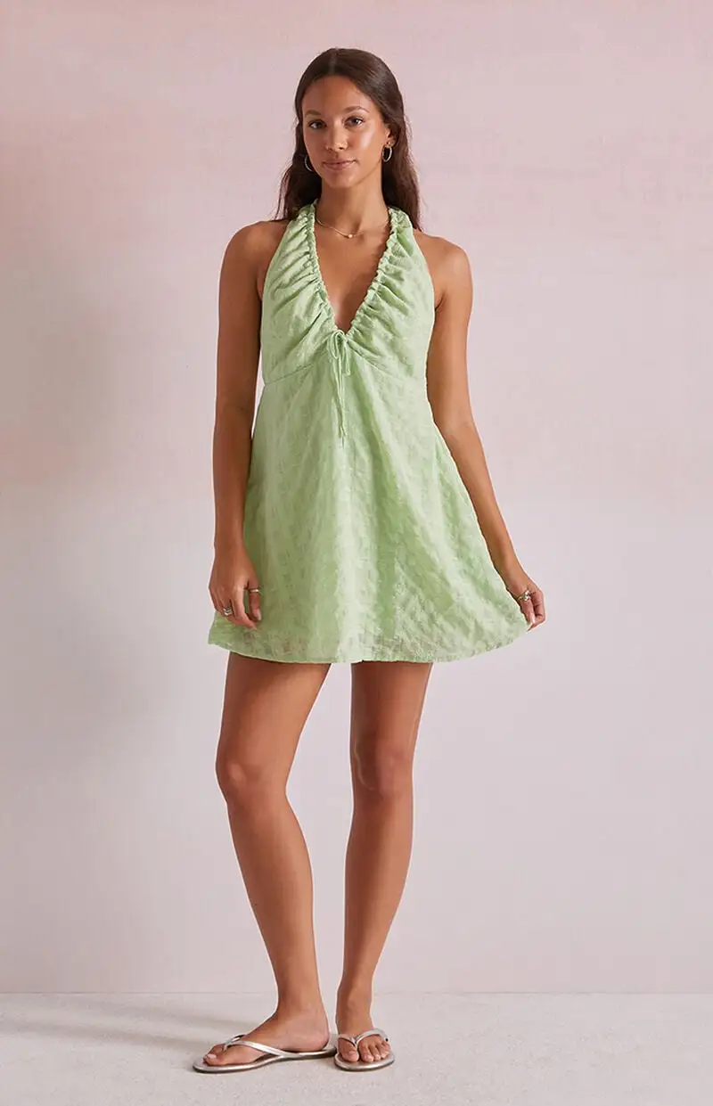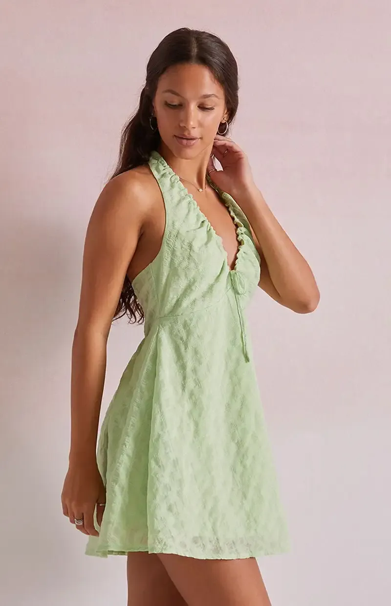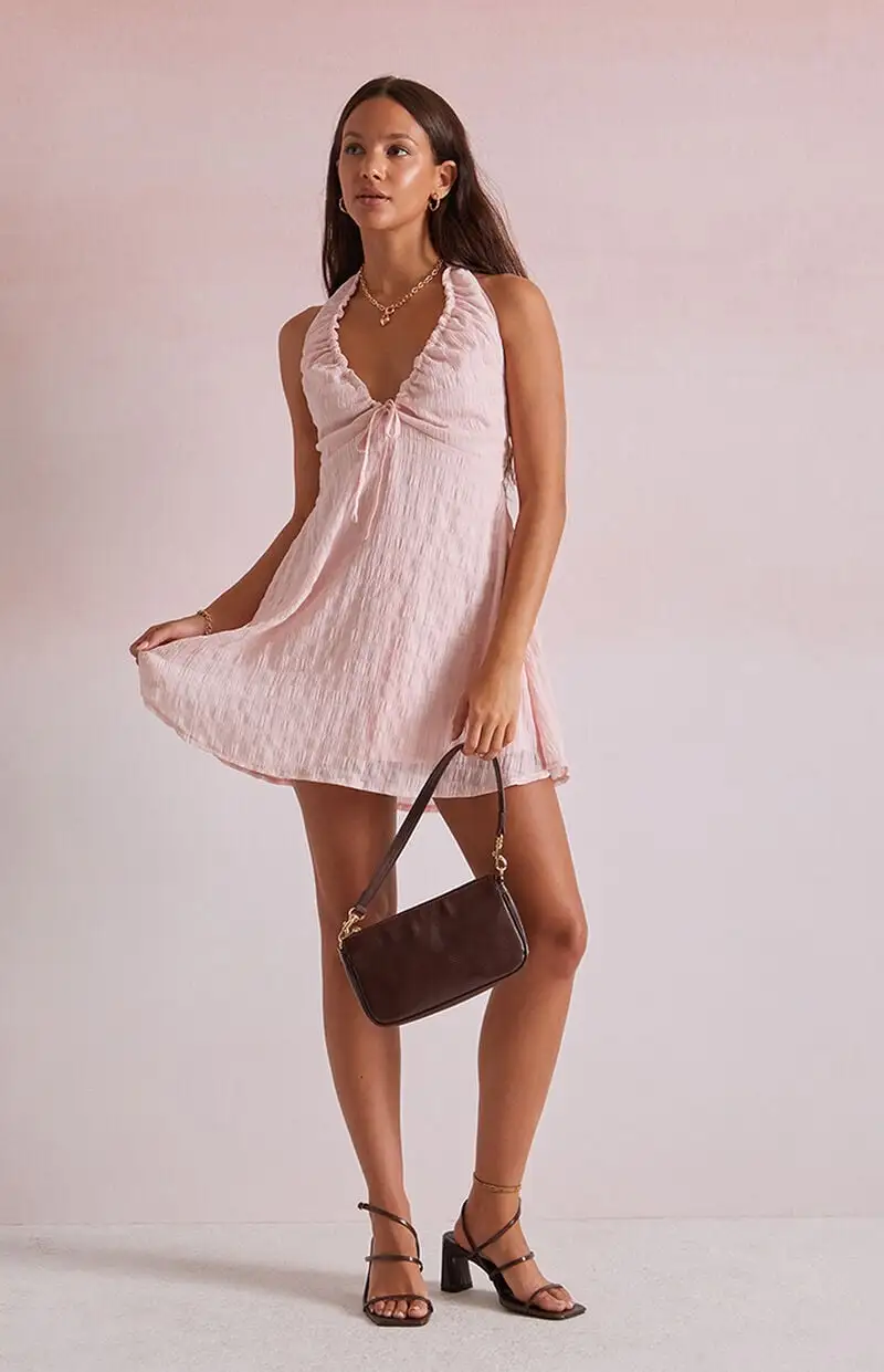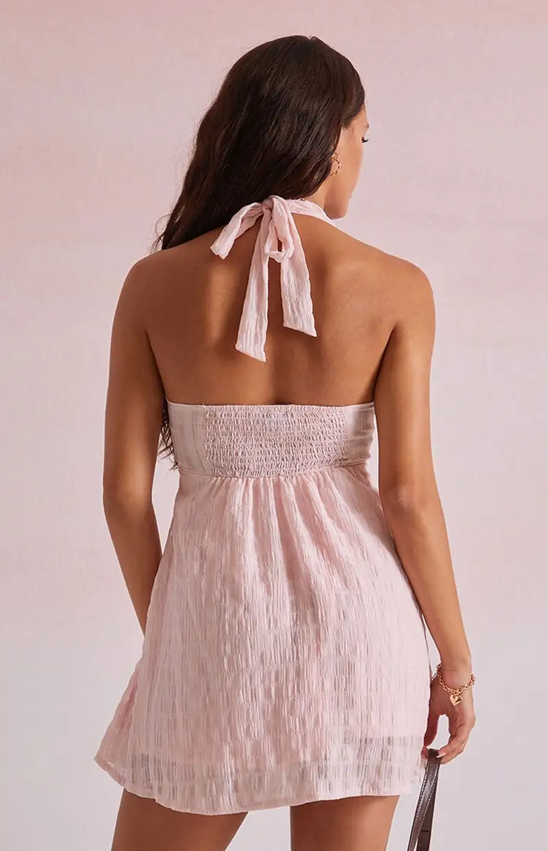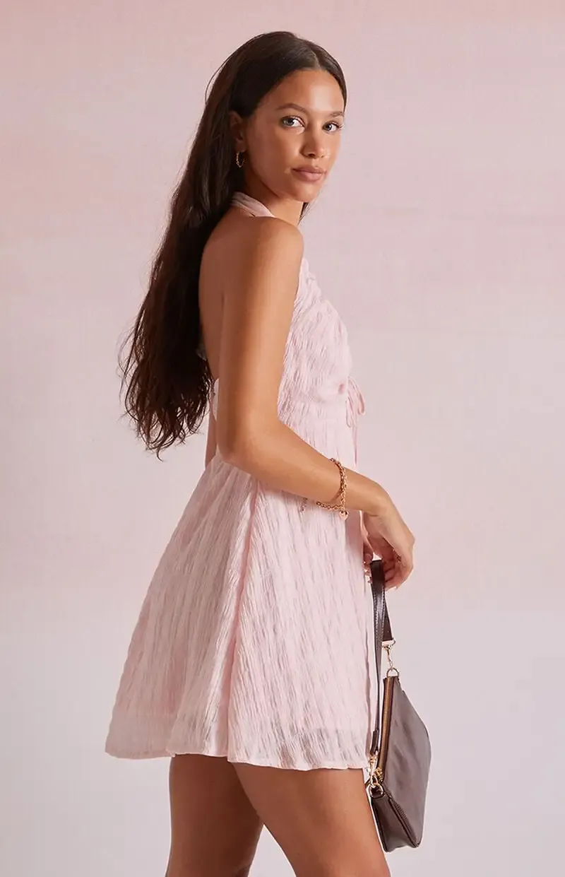 Beverly and Beck Sarah Tie Back Halter Mini Dress