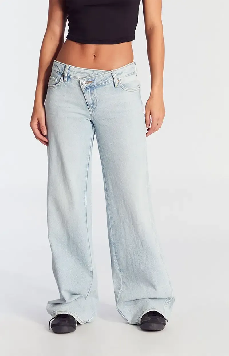 Casey Low Rise Baggy Jeans Asymmetrical Light Indigo