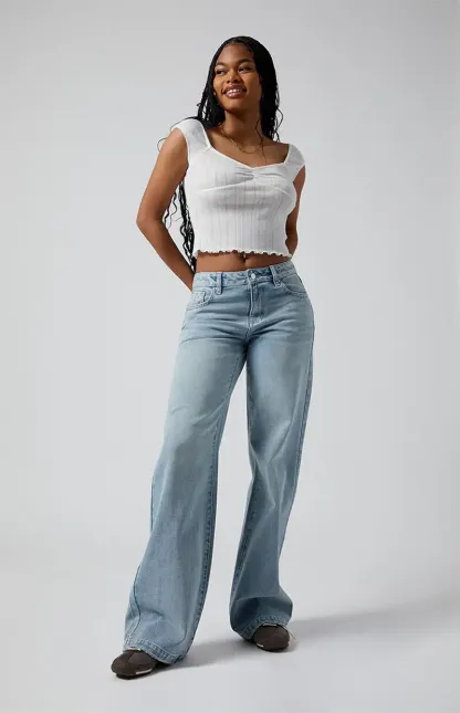 Casey Low Rise Baggy Jeans Bow Embroidery Light Indigo