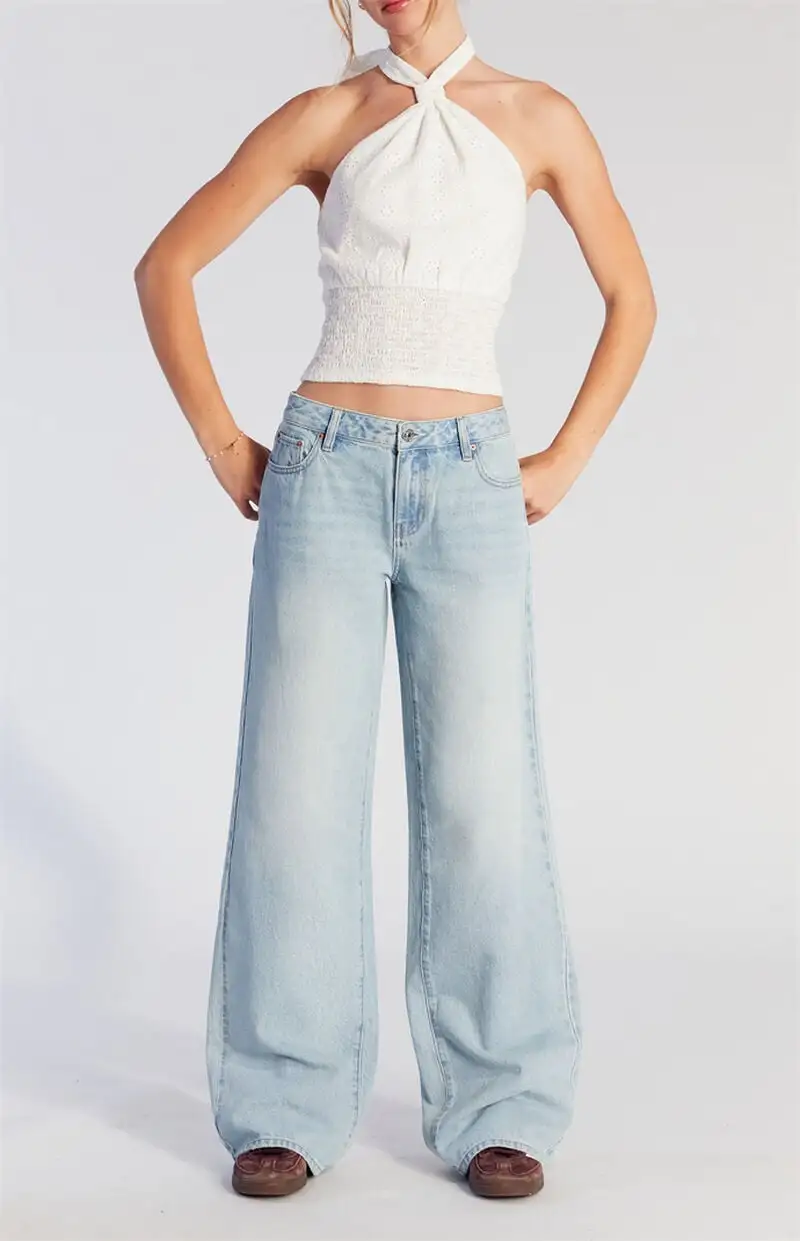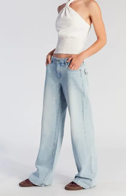Casey Low Rise Baggy Jeans Button Pocket Light Indigo