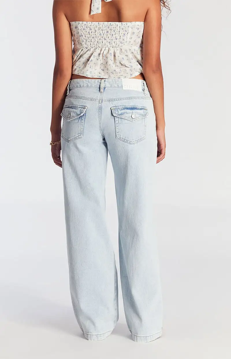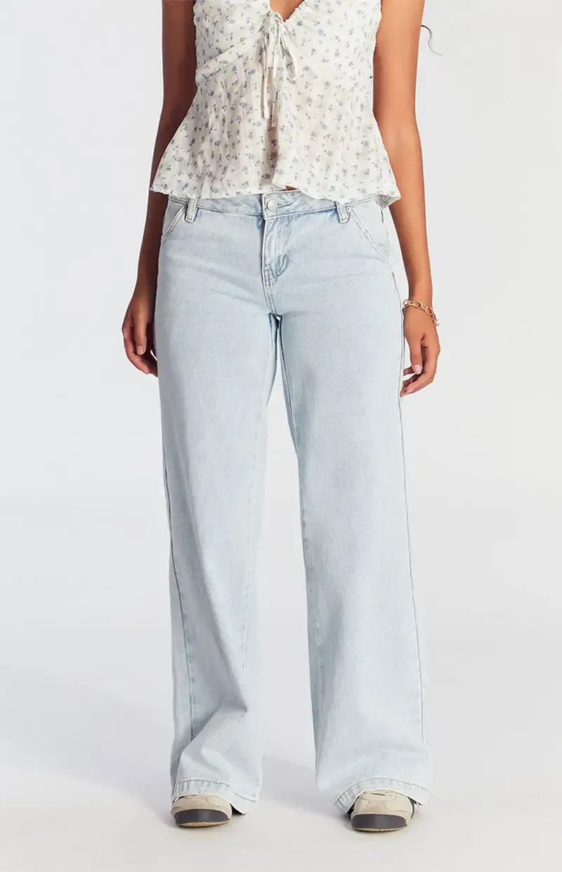 Casey Low Rise Baggy Jeans Button Pocket Light Indigo