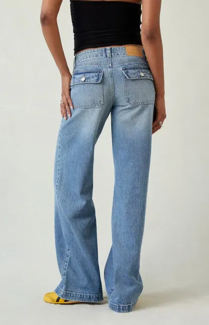 Casey Low Rise Baggy Jeans Button Pocket Medium Blue