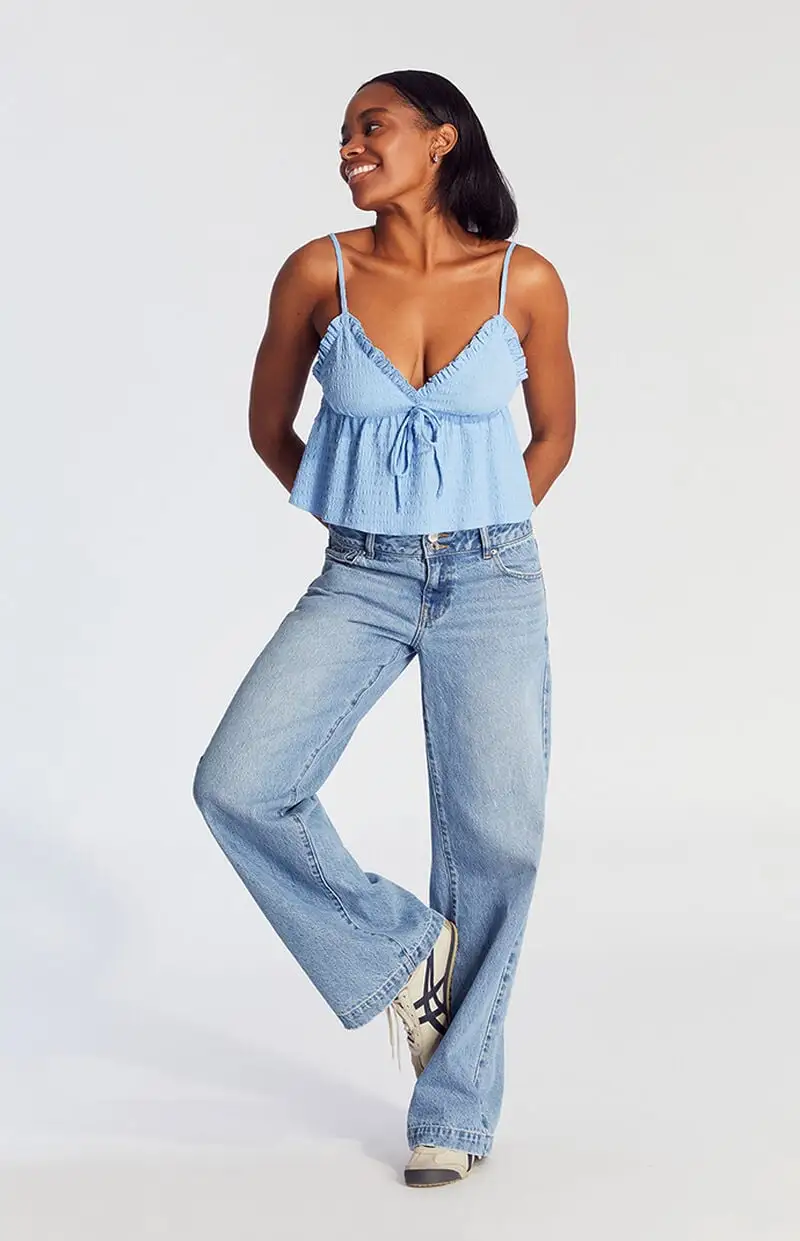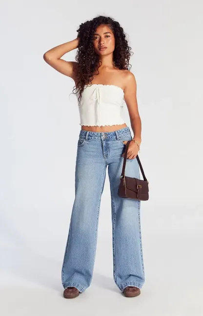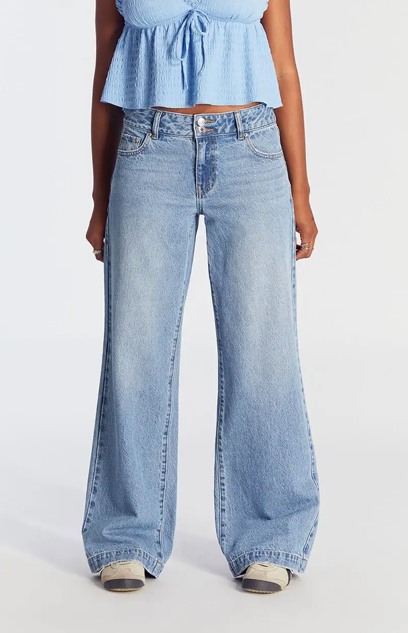 Casey Low Rise Baggy Jeans Double Button Medium Indigo