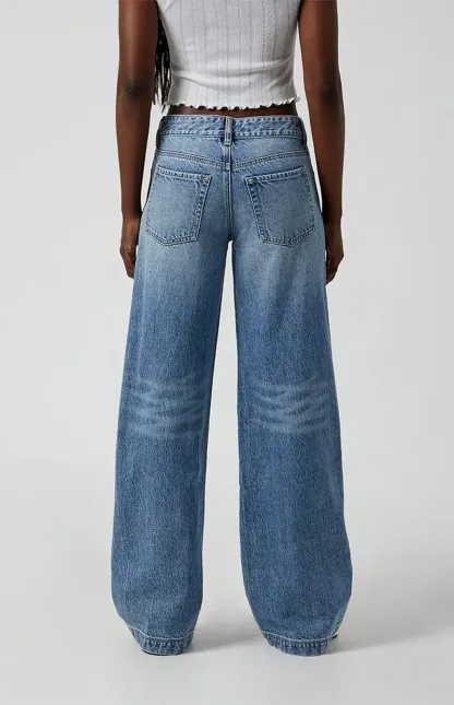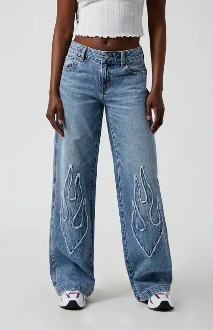 Casey Low Rise Baggy Jeans Frayed Flame Patch Medium Indigo