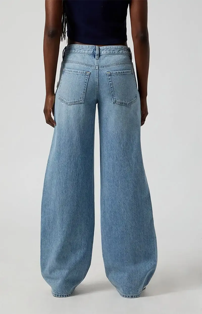 Casey Low Rise Baggy Jeans Rhinestone Bow Light Indigo