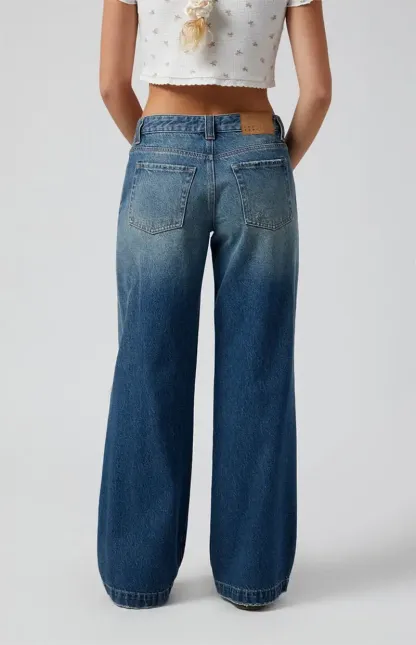 Casey Low Rise Baggy Jeans Ripped Knee Medium Indigo