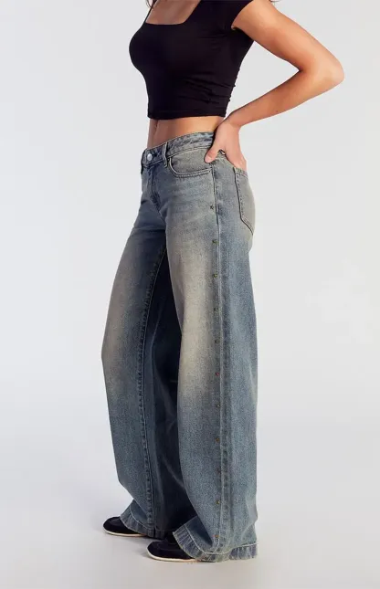 Casey Low Rise Baggy Jeans Star Stud