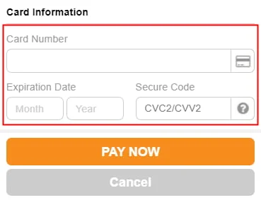 Debit /Credit Card, just enter your