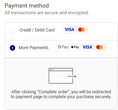 - If you don't have a Google Pay account, we accept all major credit cards: simply select 'Google Pay' and click the 'Pay by debit or credit card' button.