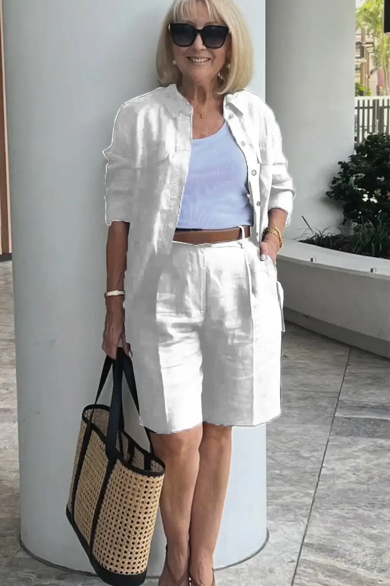 Cotton and linen shirt short suit