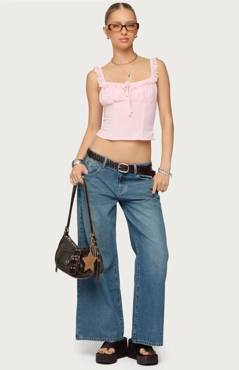 Edikted Petite Vyxen Vintage Washed Low Rise Jeans