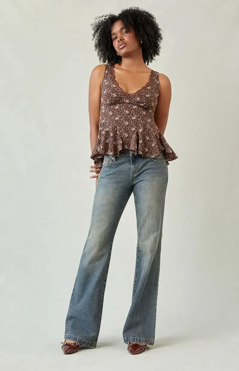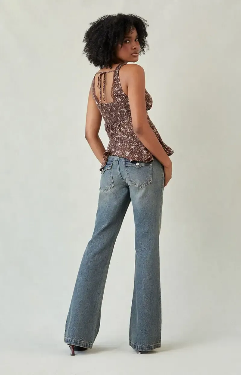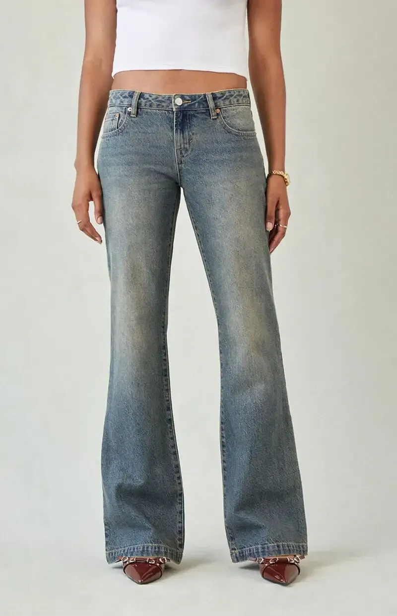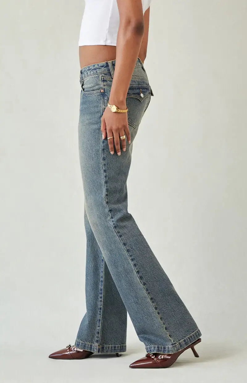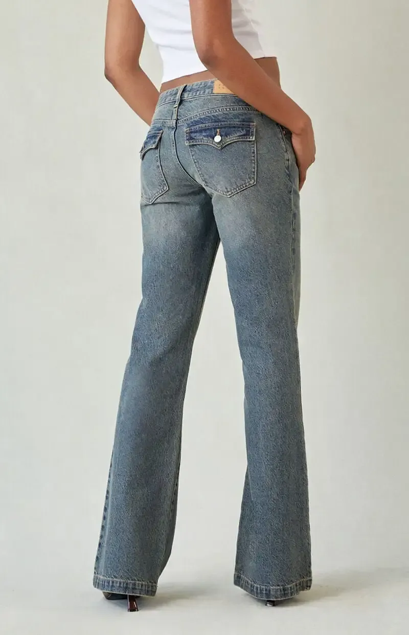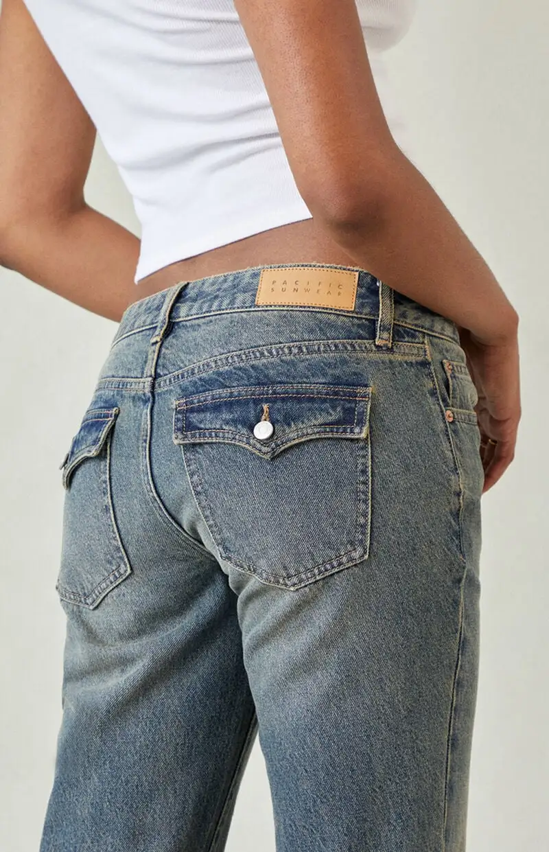 Jade Low Rise Bootcut Jeans Button Pocket Dark Blue