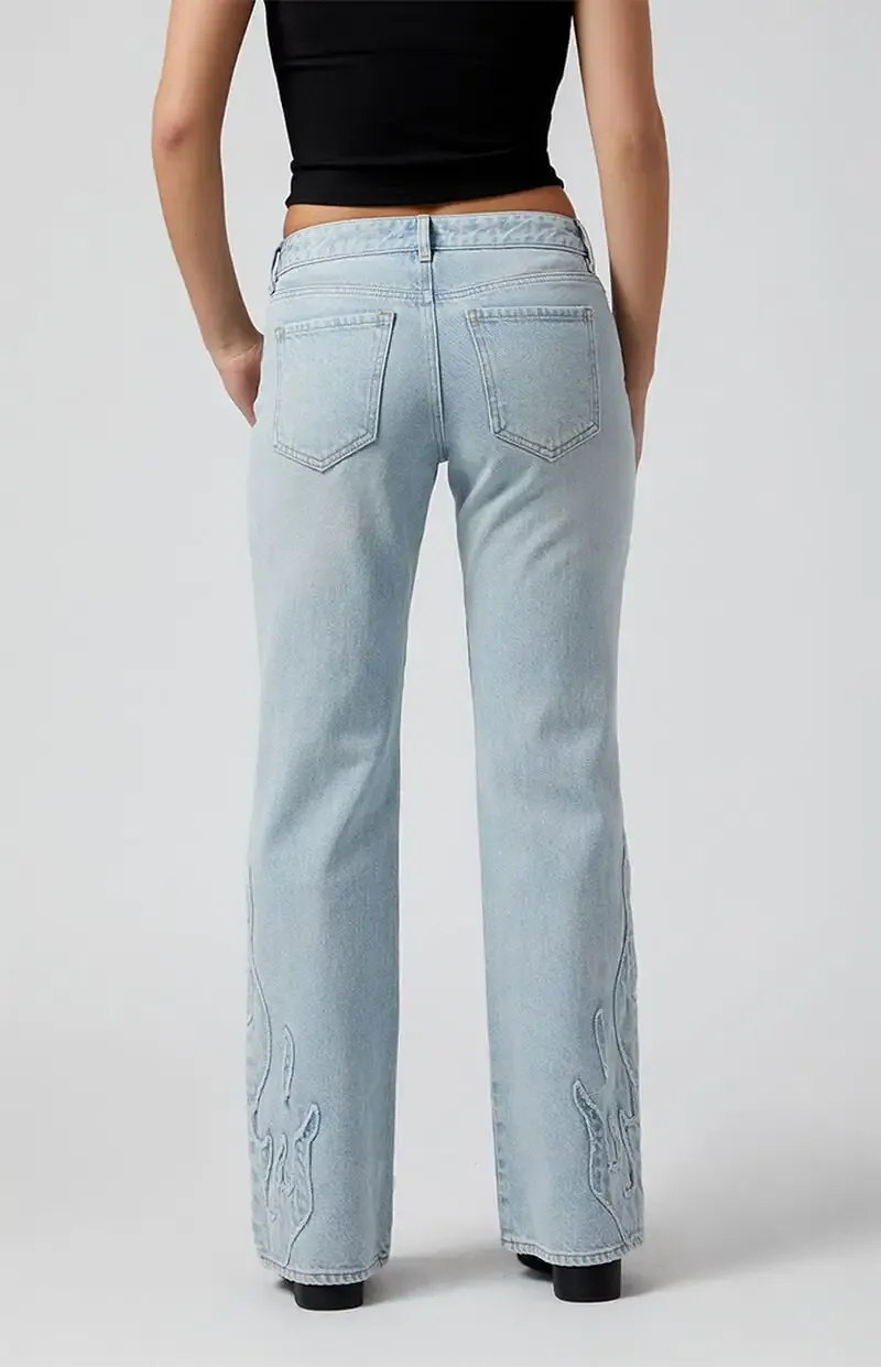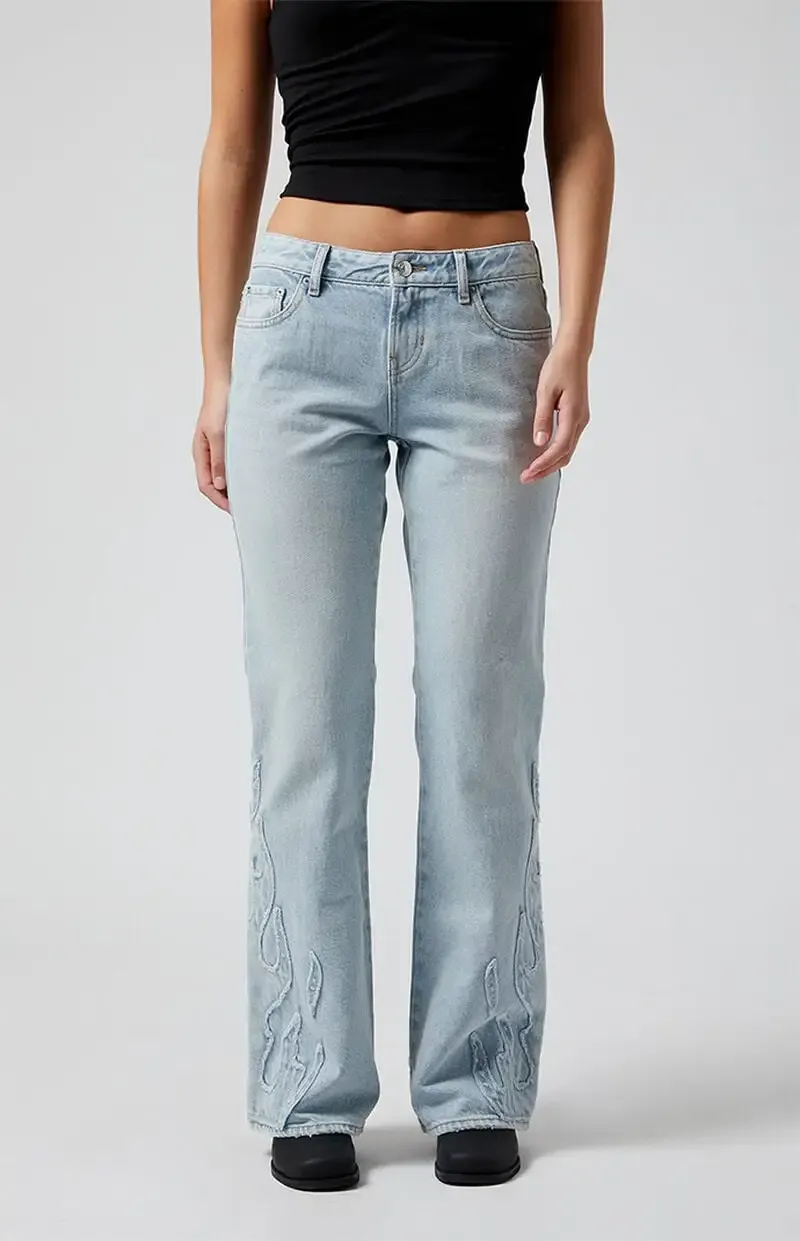 Jade Low Rise Bootcut Jeans Flames Light Indigo