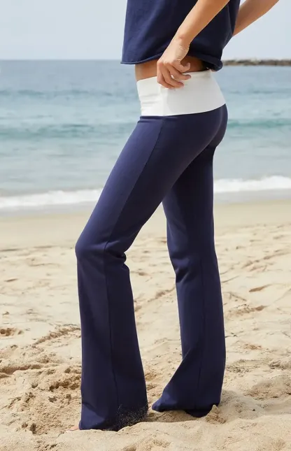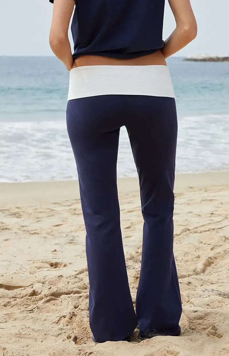 John Galt Blue & White Contrast Priscilla Flare Pants