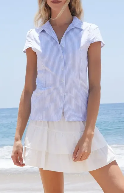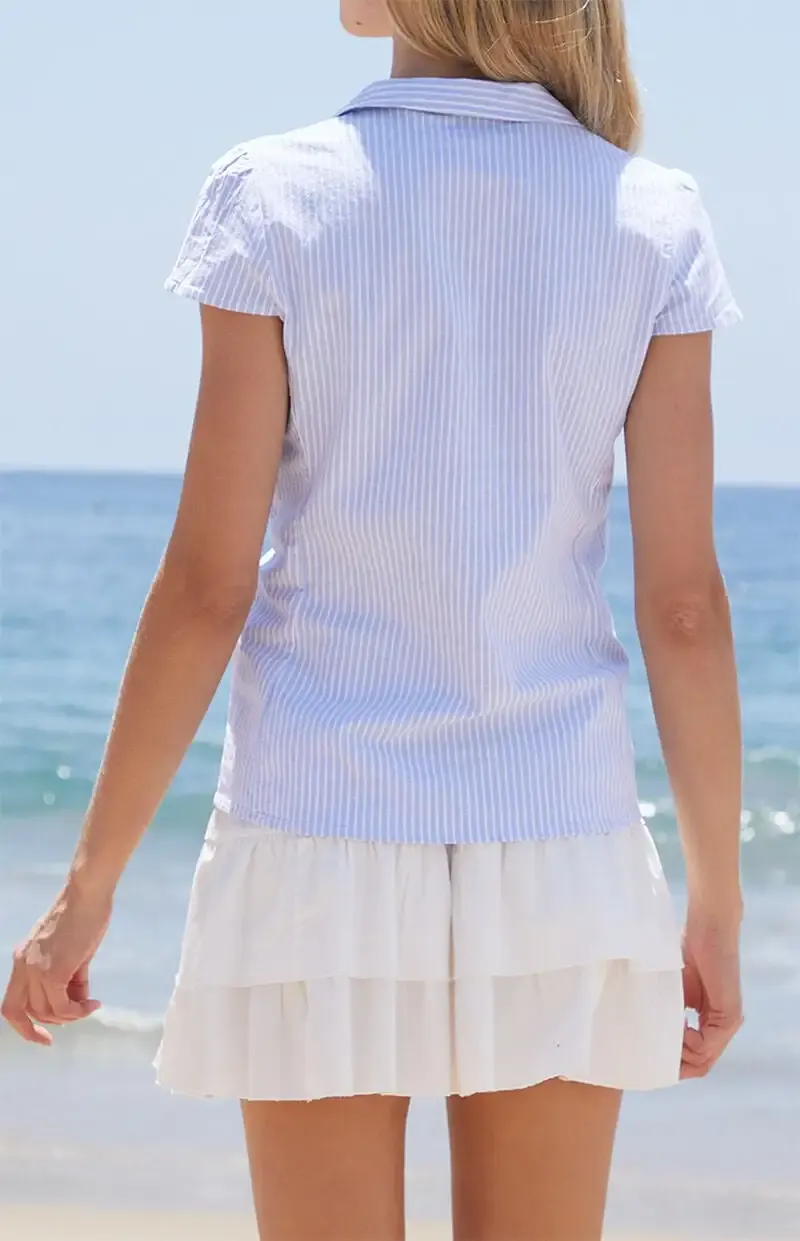 John Galt Blue & White Striped Rue Collared Top