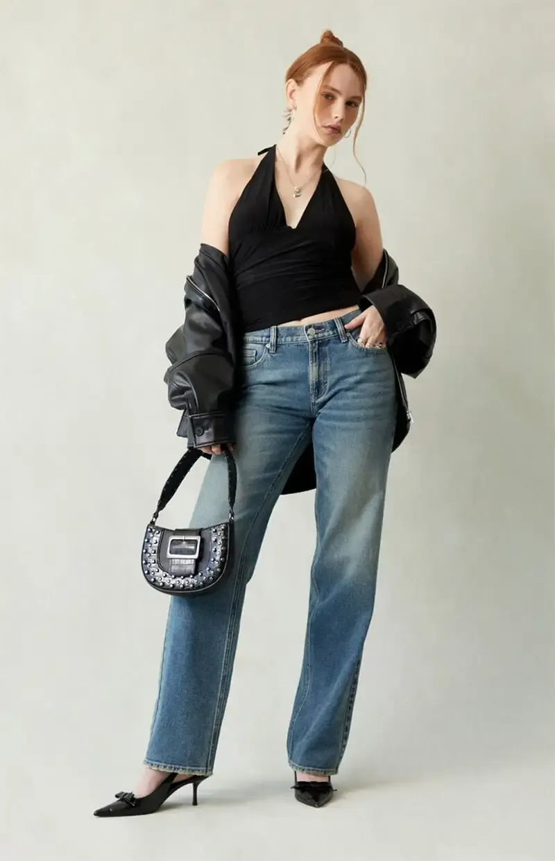 Jordyn Low Rise Straight Leg Jeans Medium Blue Tinted