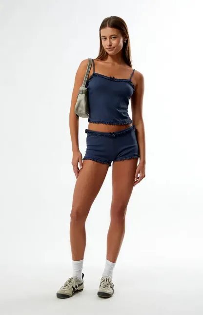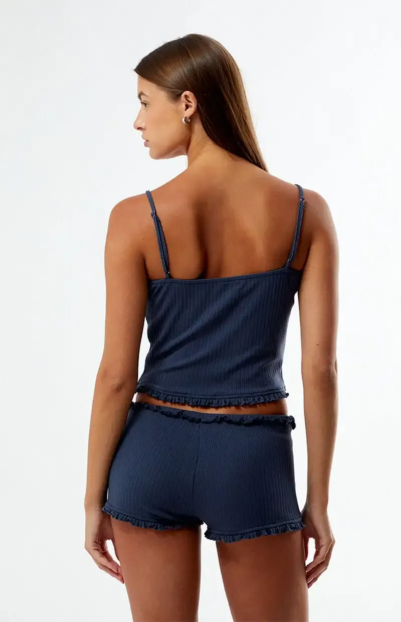 LA Hearts Ruffle Knit Pajama Tank & Shorts Two-Piece Set