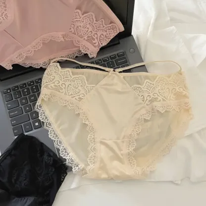 Ladies Pure Wind Satin Lace Sexy Mid-waist Panties