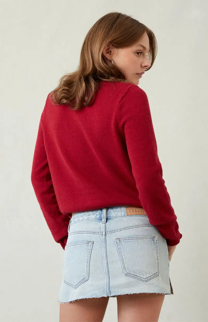 Lara Light Indigo Raw Cut Low Rise Denim Mini Skirt