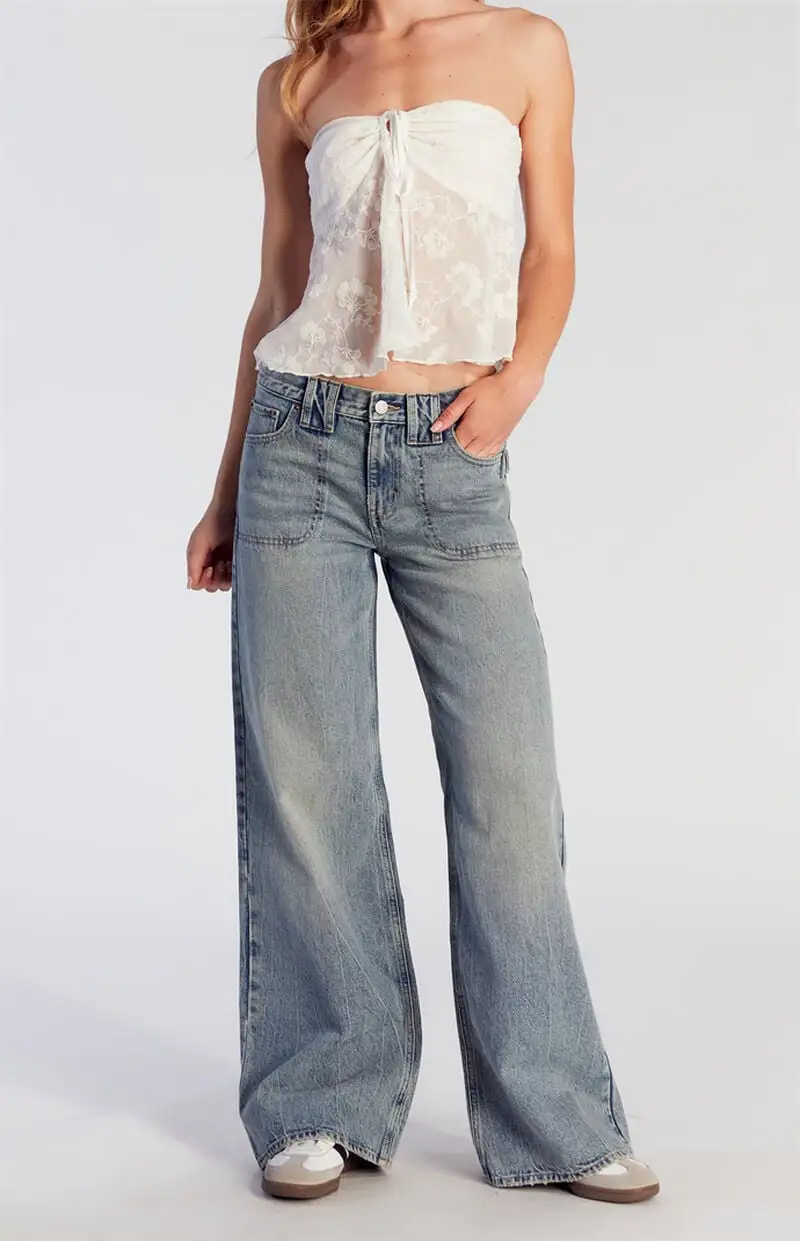 Lena Low Rise Super Baggy Jeans Light Indigo Tinted