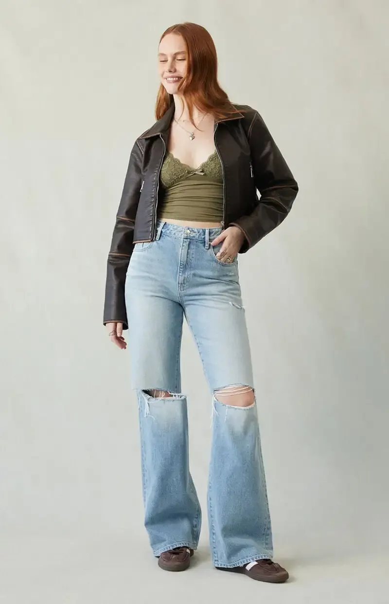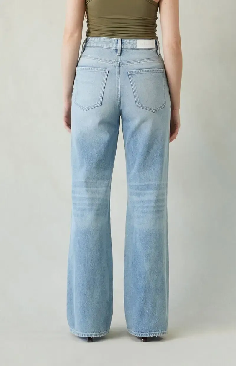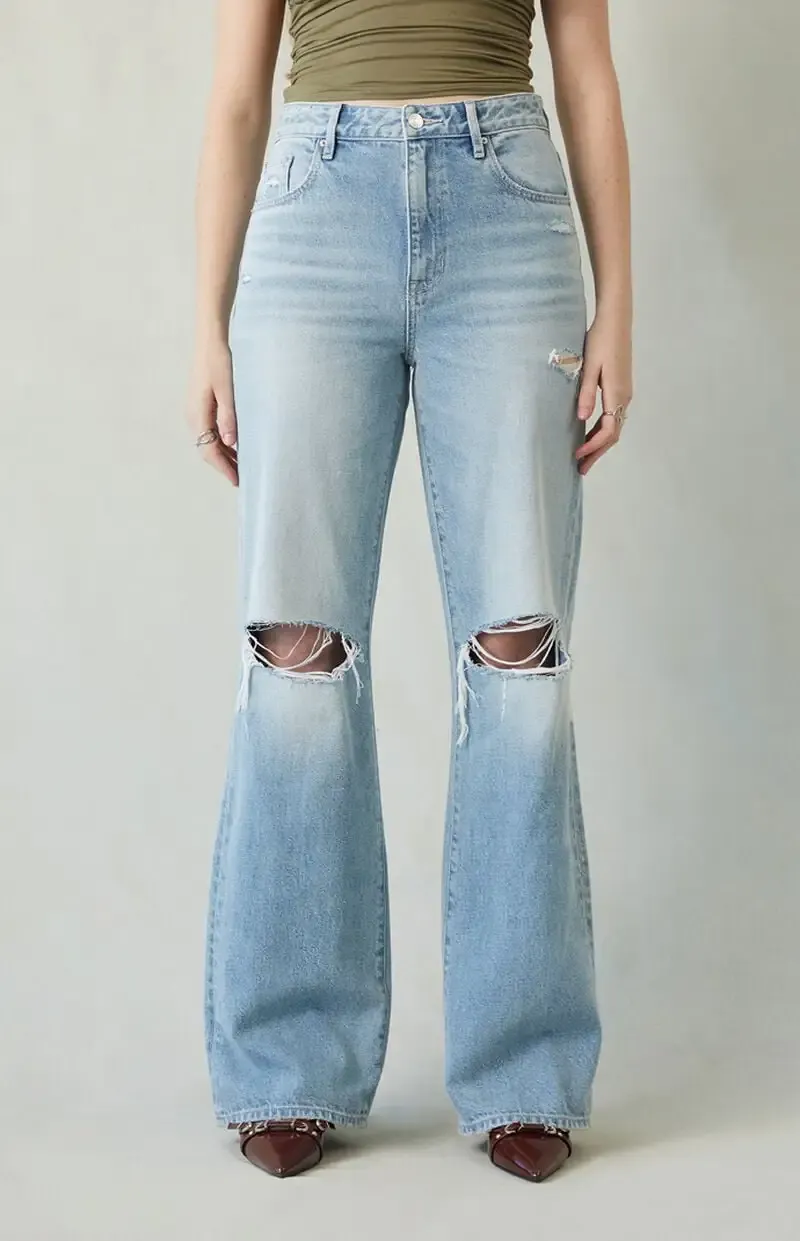 Madison High Waisted Girlfriend Jeans Ripped Light Indigo