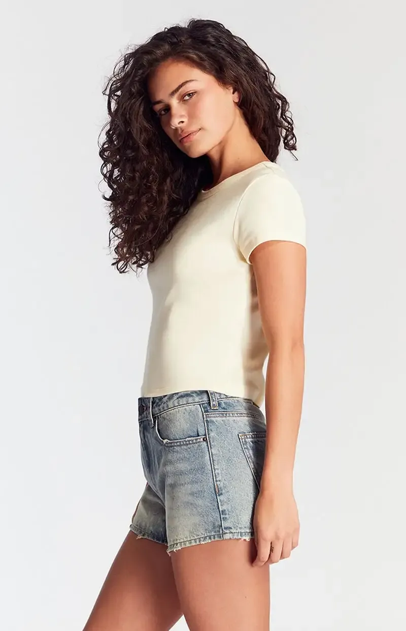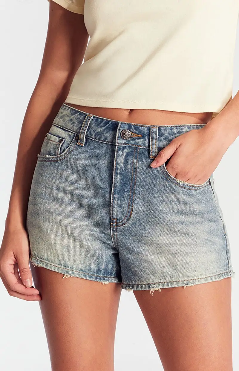 Medium Indigo Distressed Denim Mom Shorts