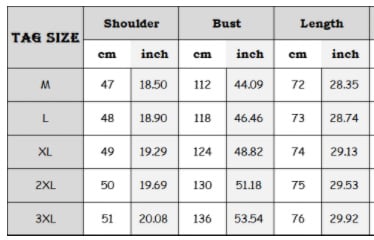 Size: M-3XL(in/cm)