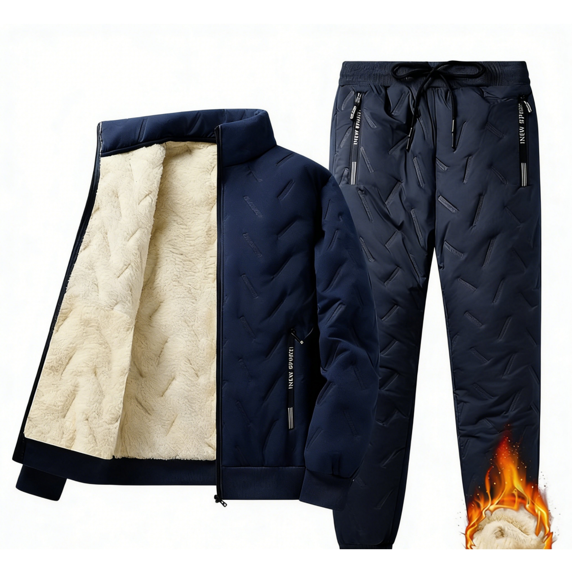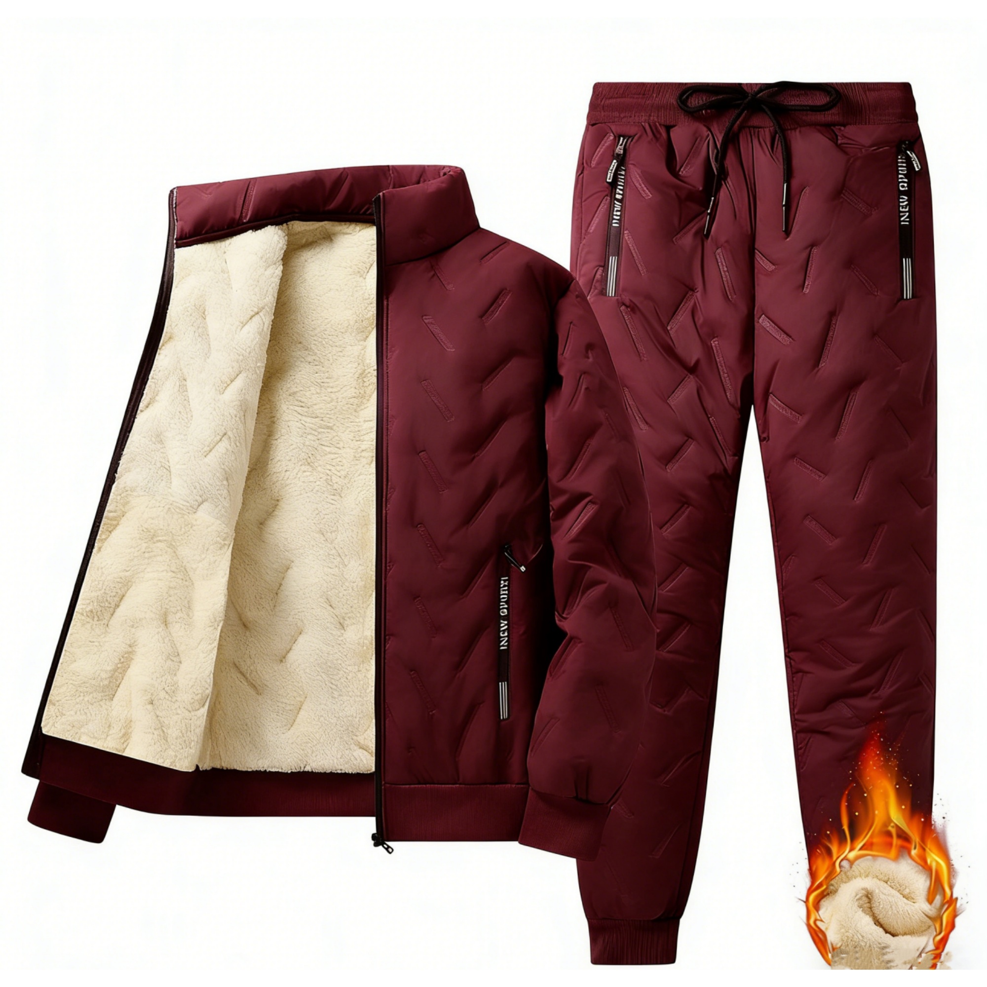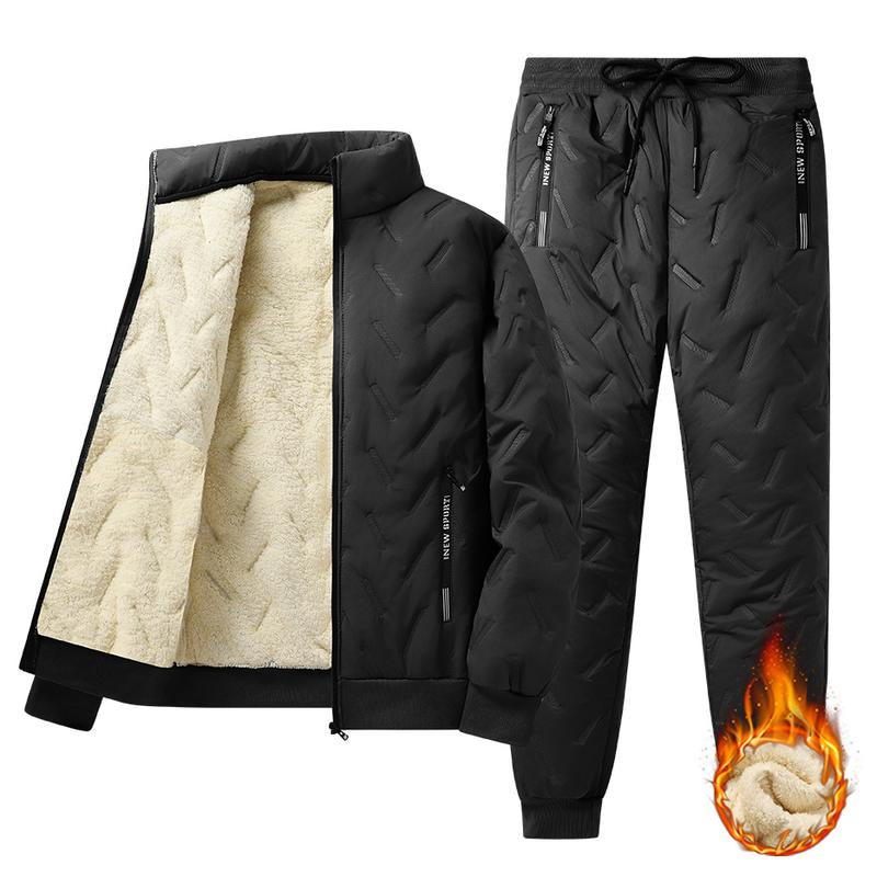 Men's Hooded Fleece Casual Set Stand Collar Jacket & Pants