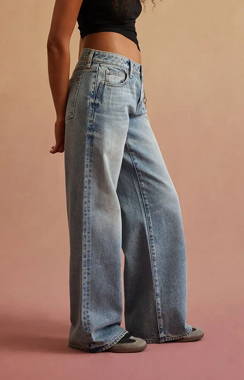 RARE DNM EDIT Light Blue Heart Chain Low Rise Baggy Jeans