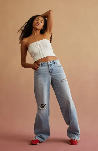 RARE DNM EDIT Light Blue Ripped Low Rise Baggy Jeans