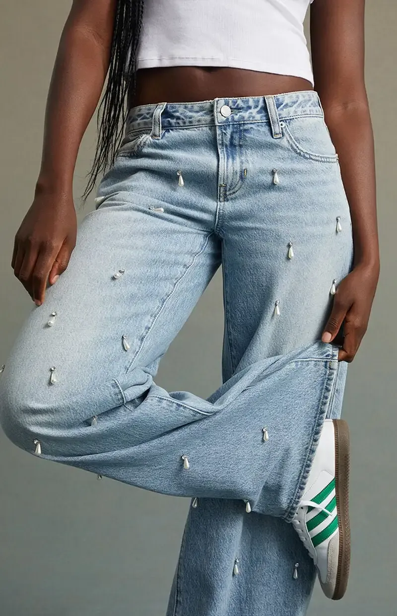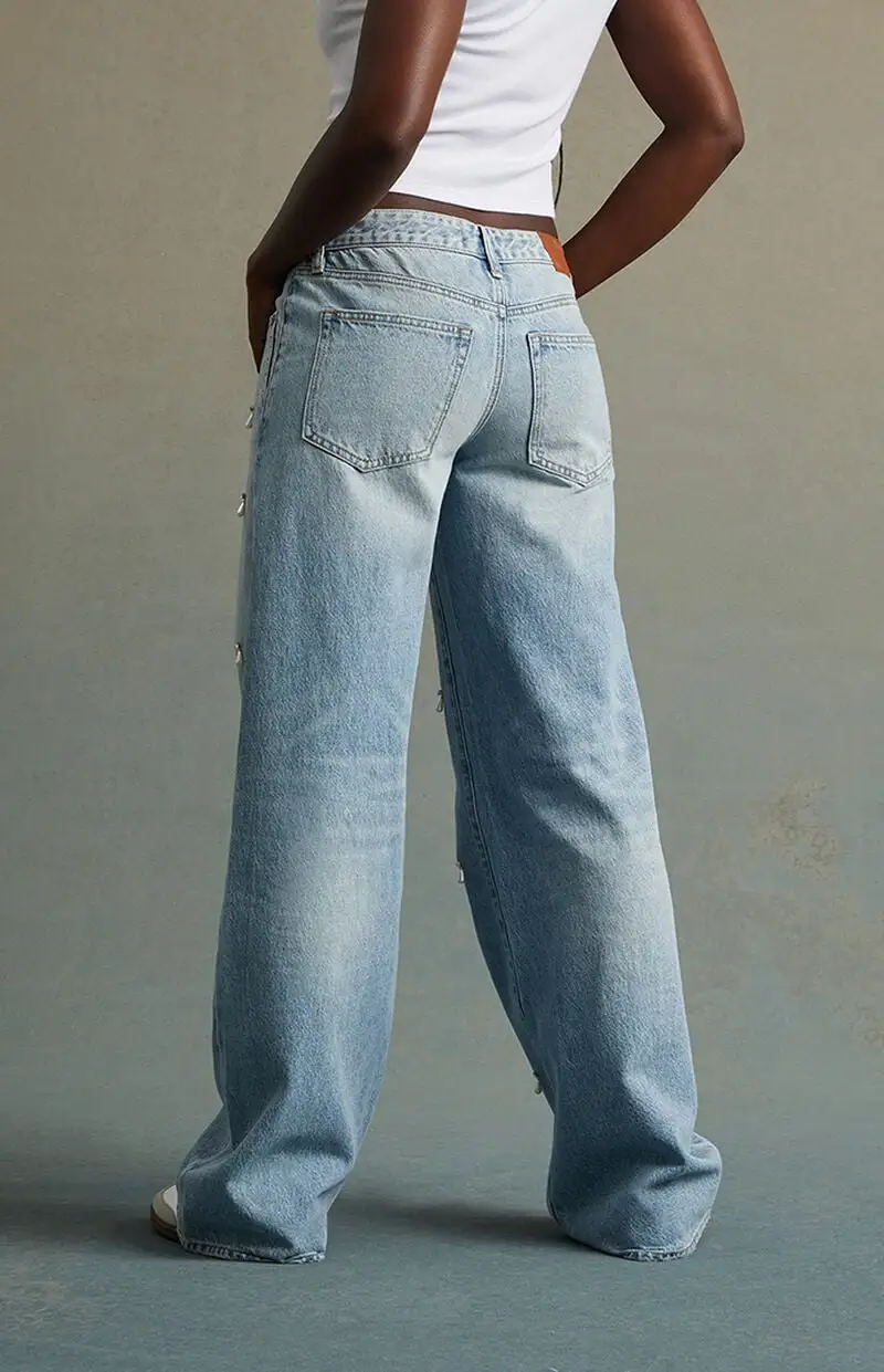 RARE DNM EDIT Light Indigo Pearl & Rhinestone Low Rise Baggy Jeans