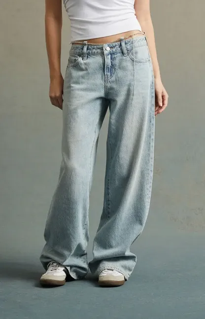 RARE DNM EDIT Tinted Light Indigo Rhinestone Belt Low Rise Baggy Jeans