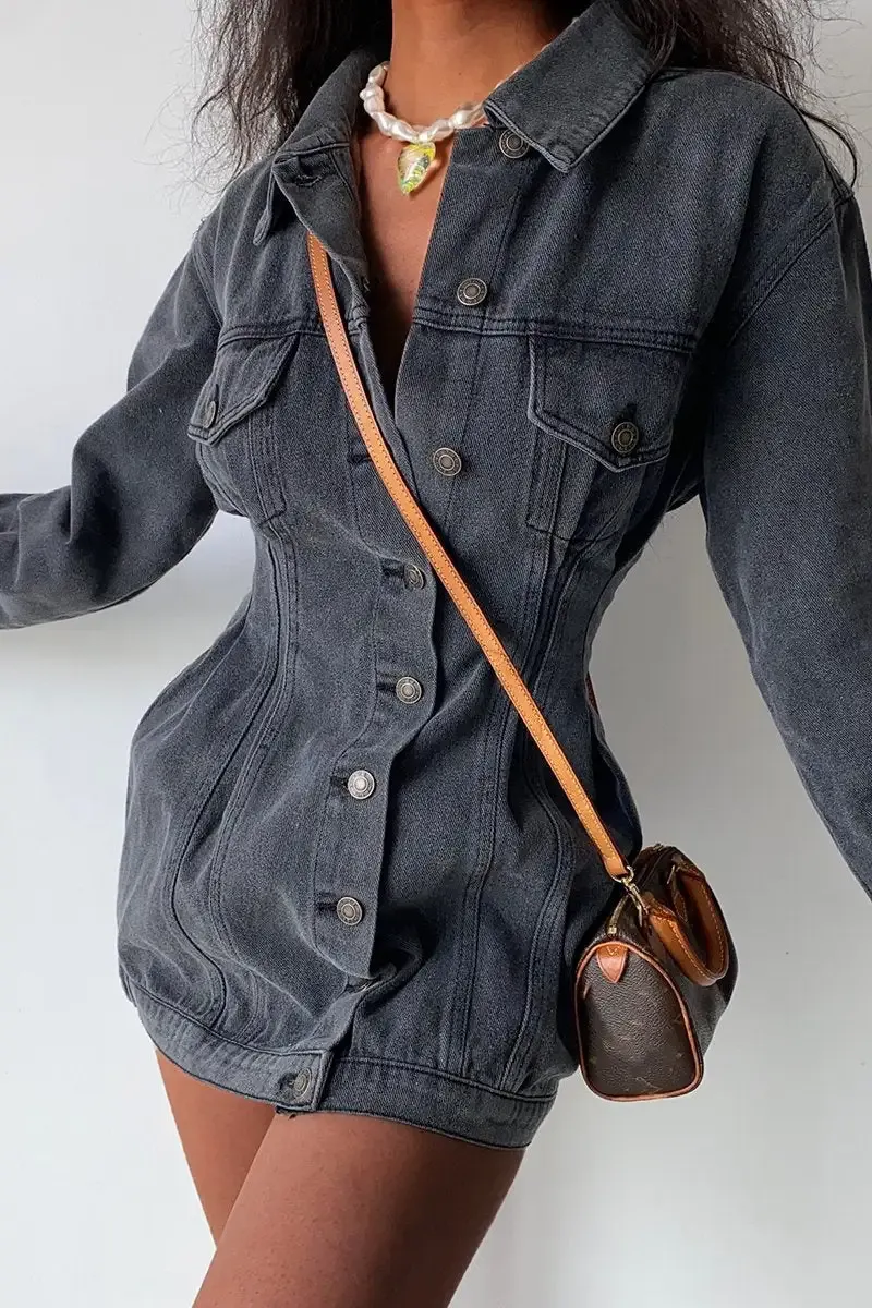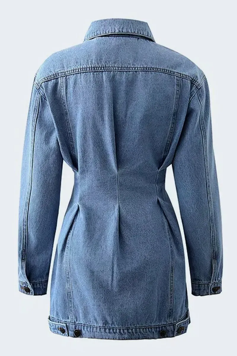Woman Elegant Waisted Denim Dress Jacket