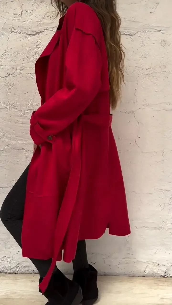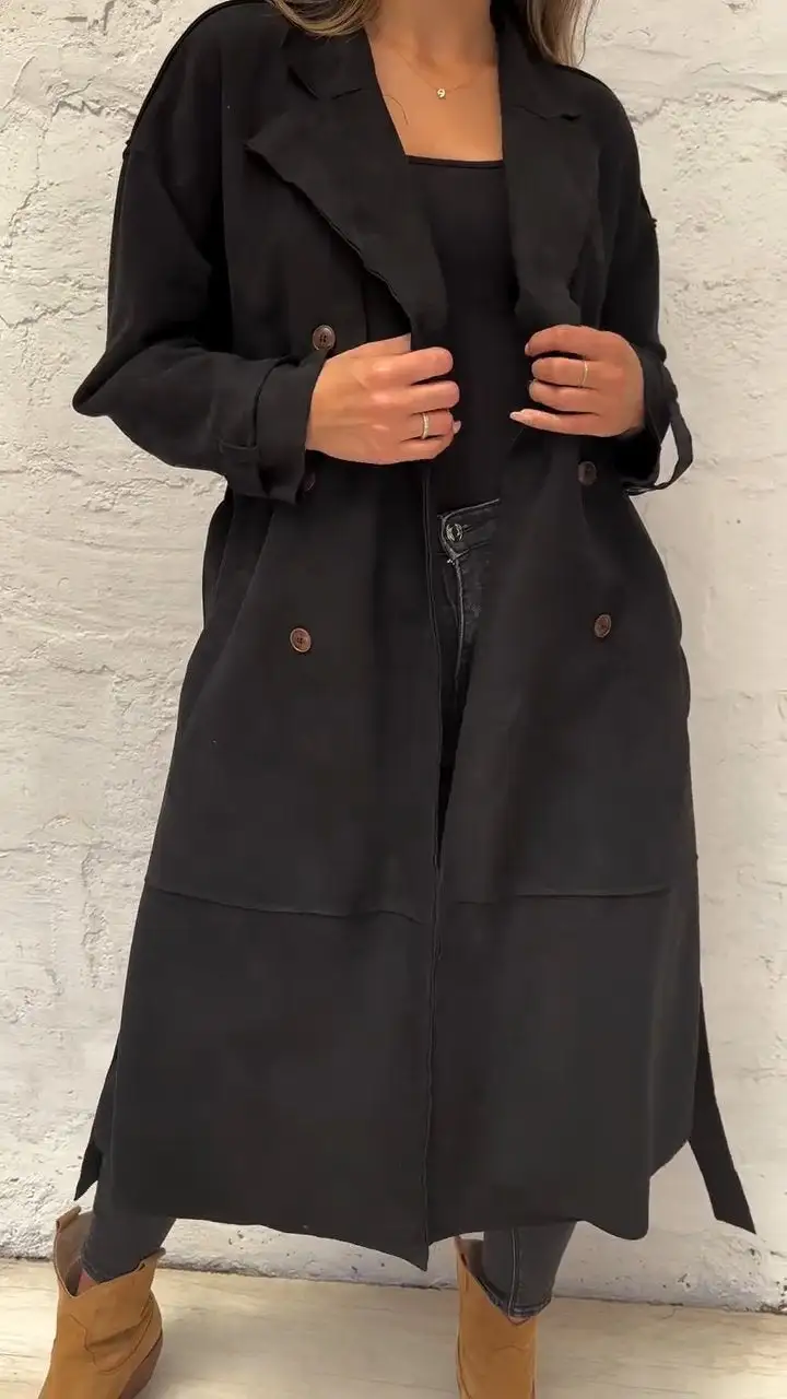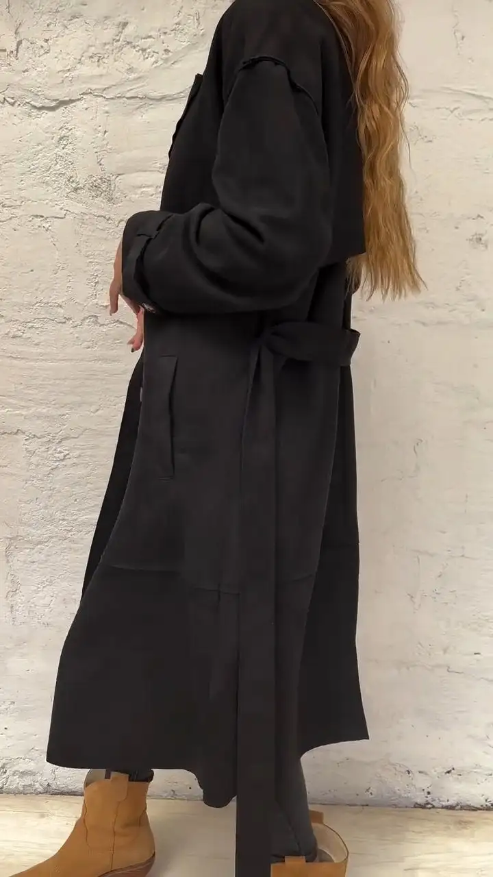 Women's Autumn and Winter Lapel Long Sleeve Casual Long Coat