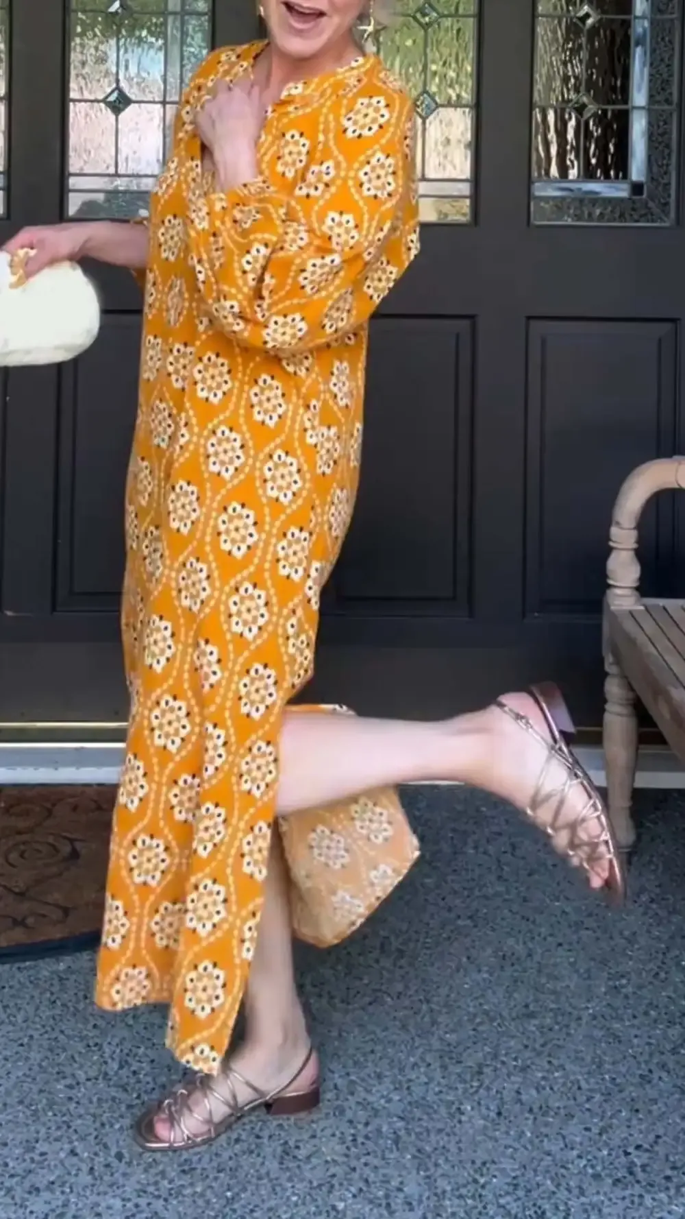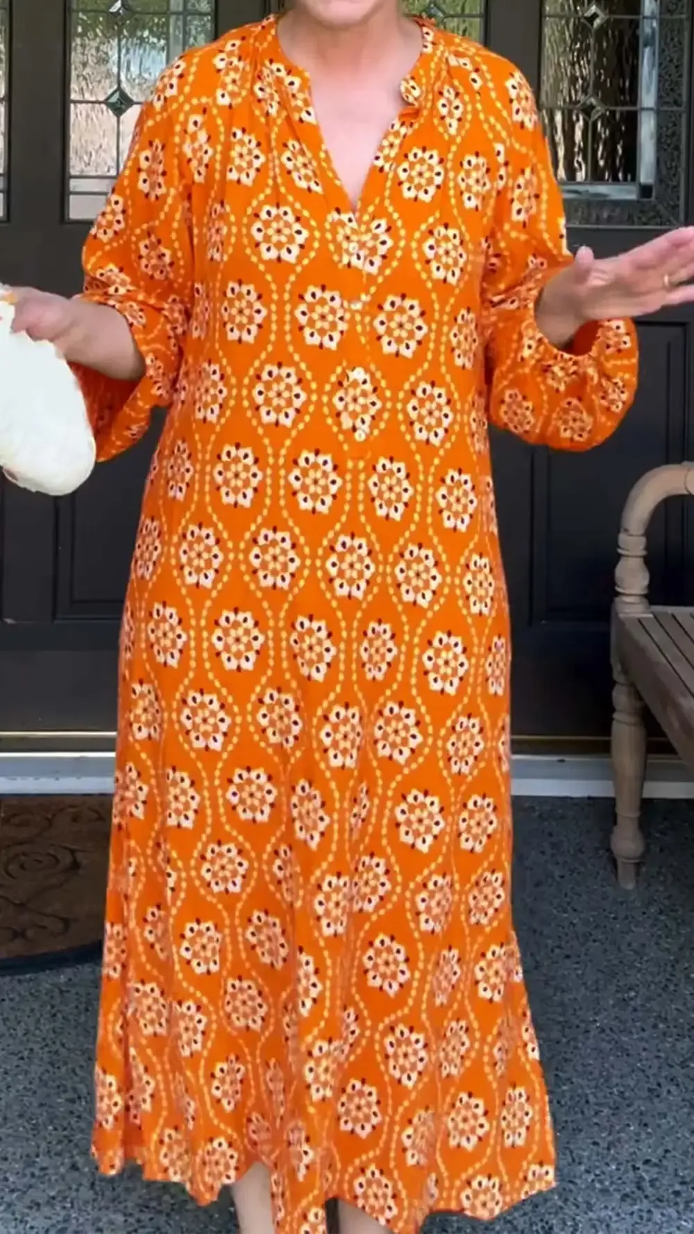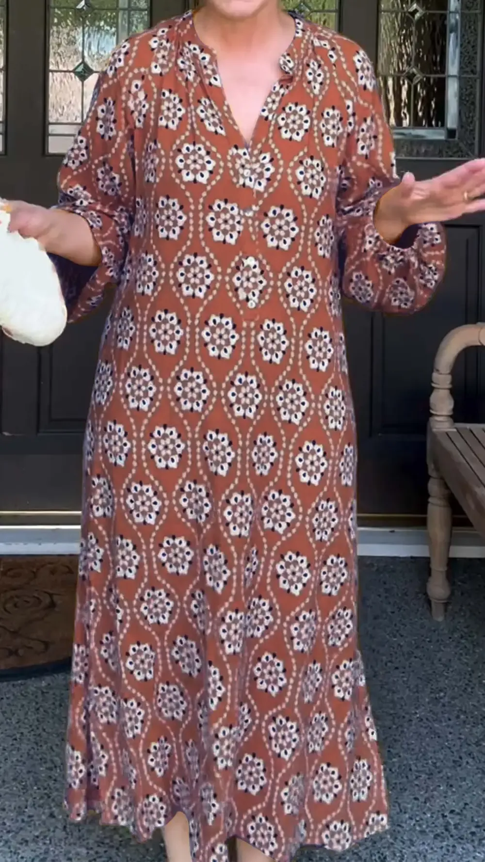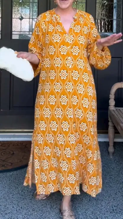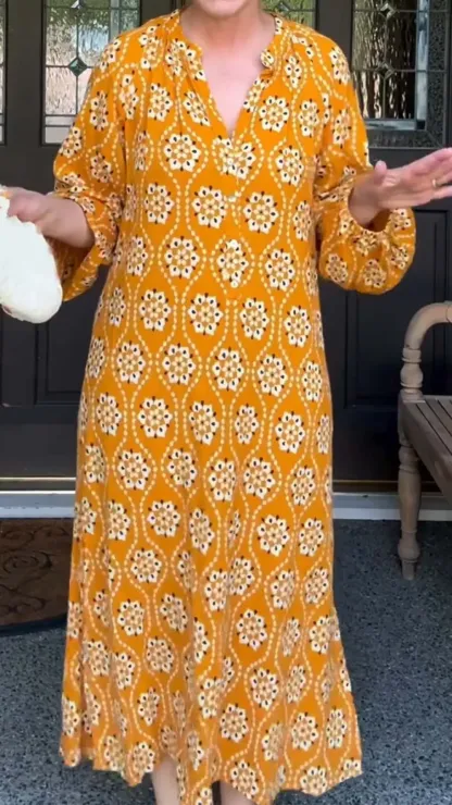 Women's Casual Floral Print Long Sleeve V Neck Dress