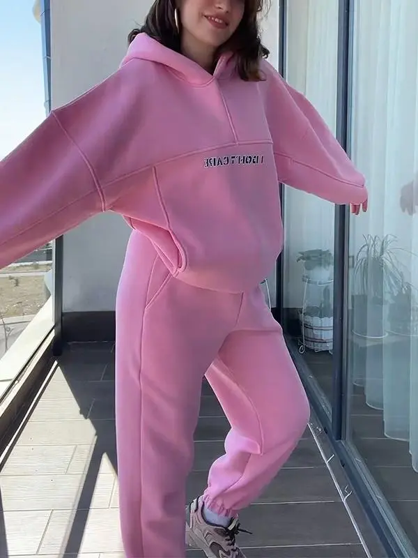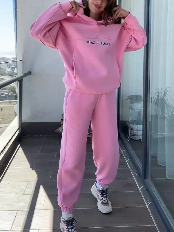 Women's Casual Hooded Letter Printed Sweatshirt Two Piece Set