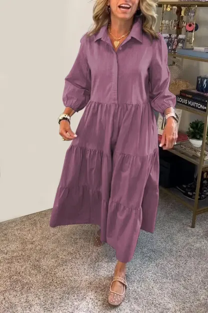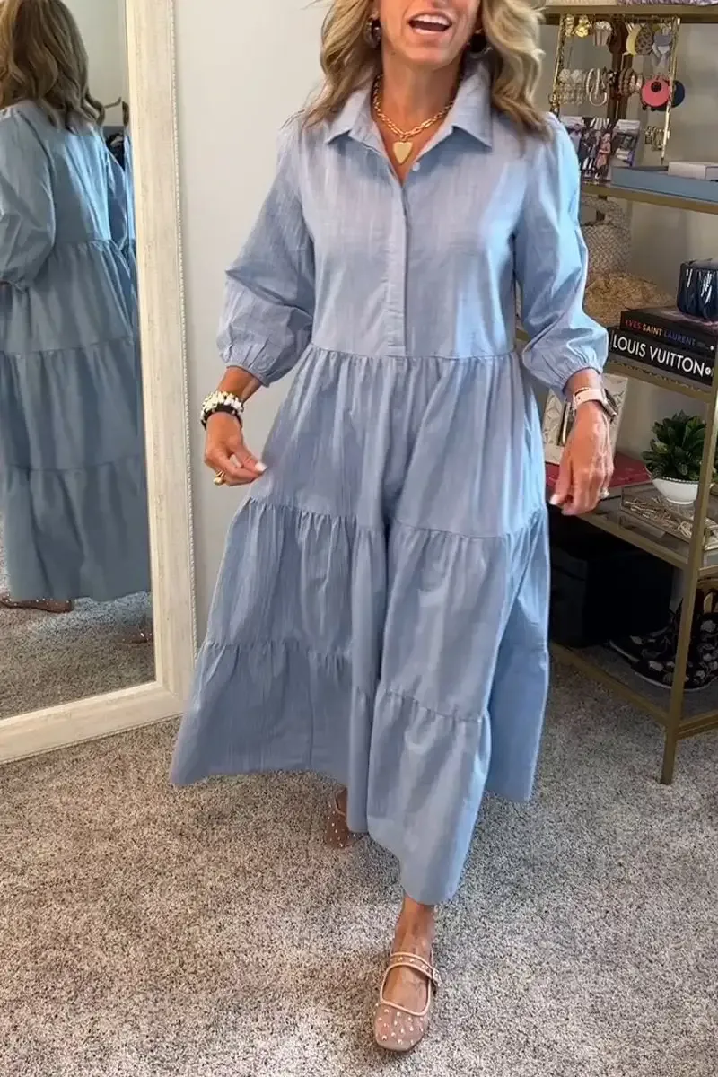 Women's Casual Lapel Half Button Dress