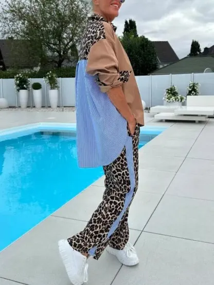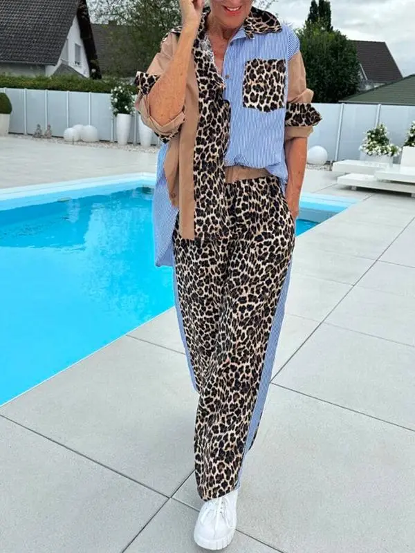 Women's Casual Lapel Leopard Print Two-piece Suit