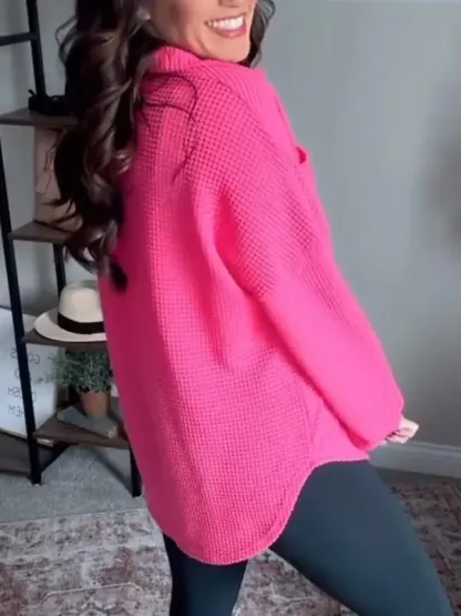 Women's Casual Lapel Waffle Long Sleeve Top