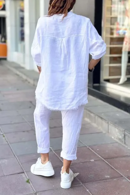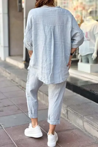 Women's casual letter printed cotton and linen top + pants set