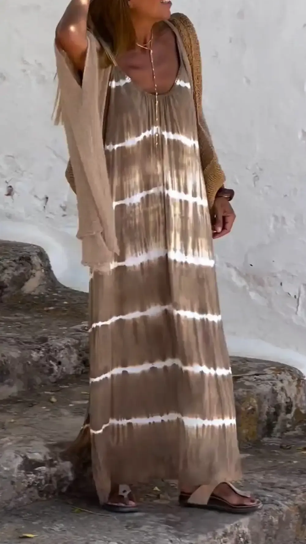 Women's Casual Tie-dye Slip Dress and Cardigan