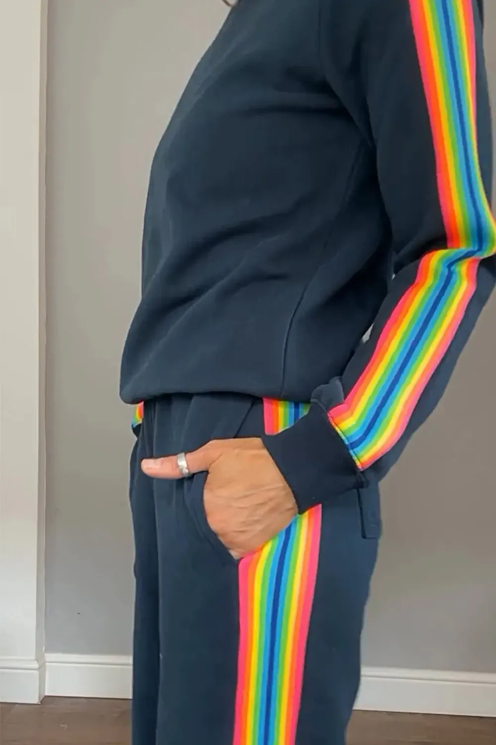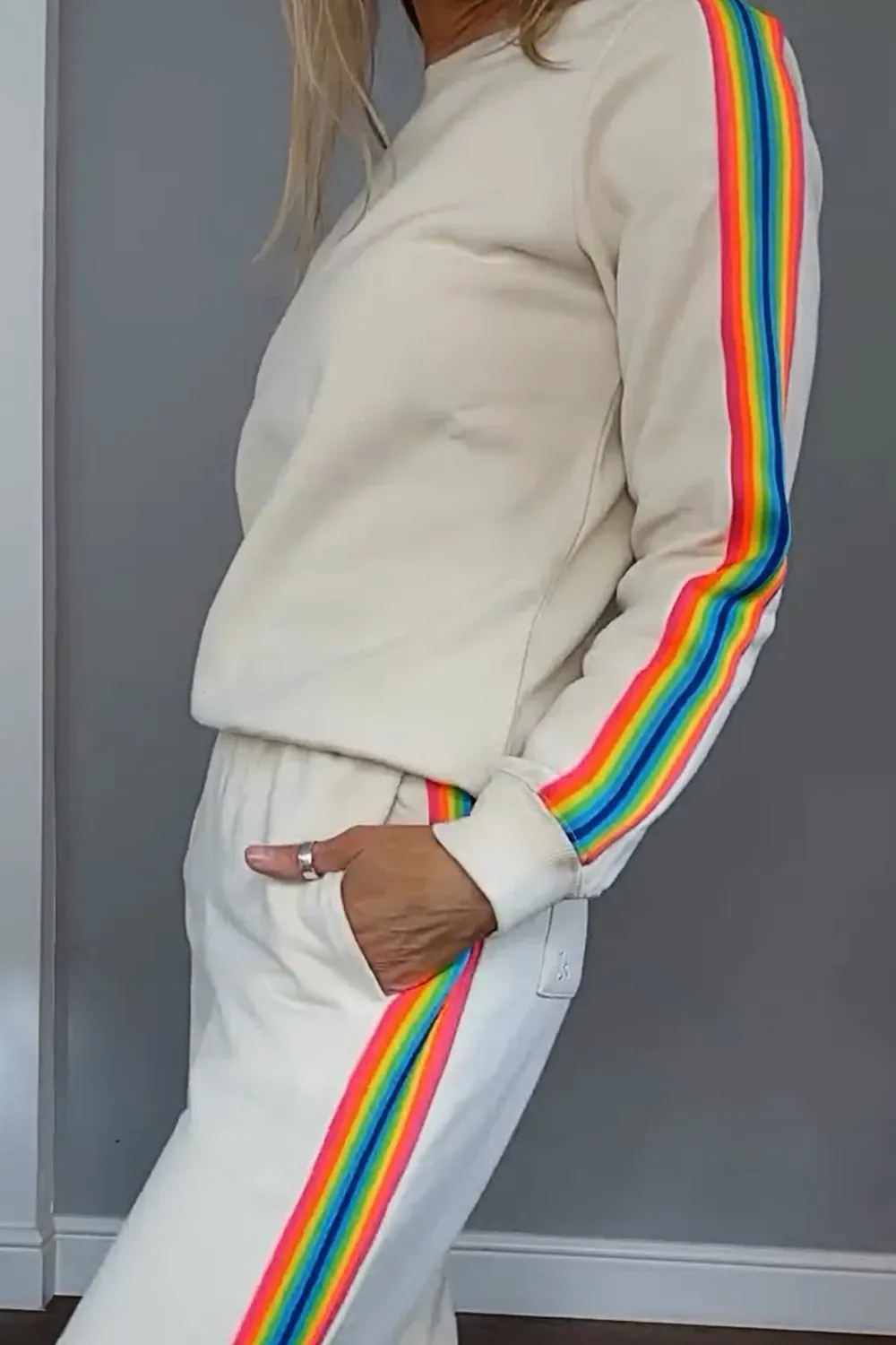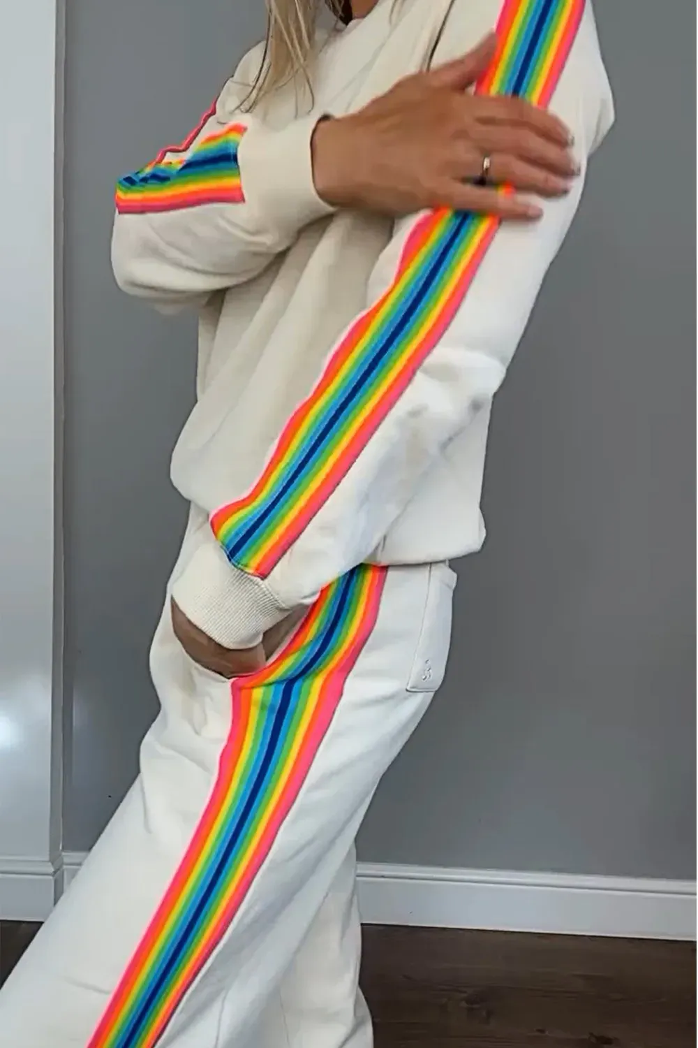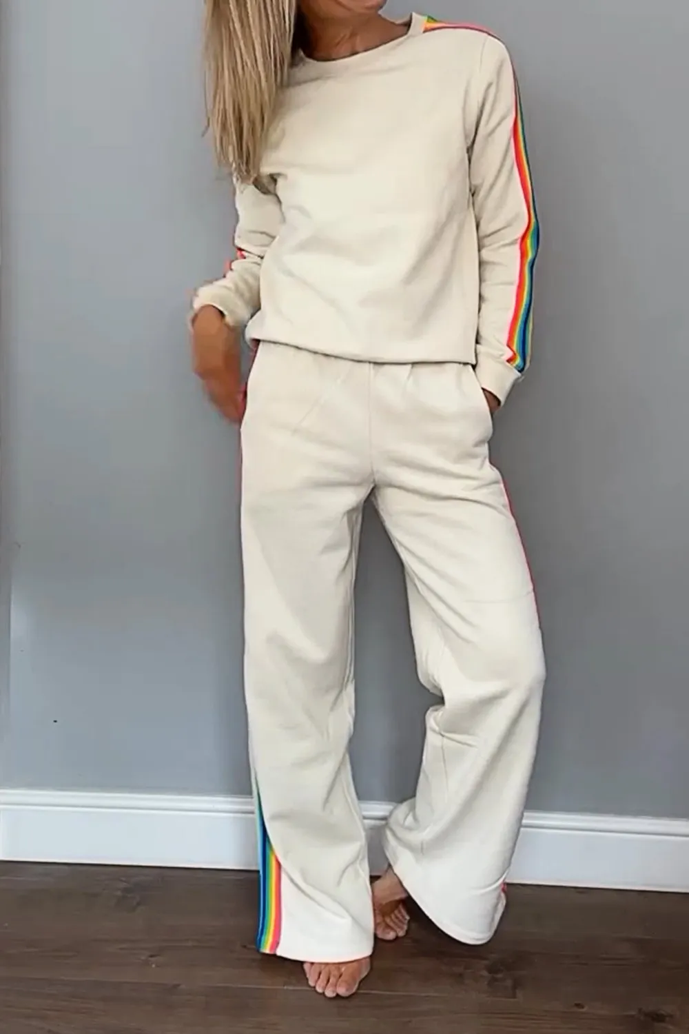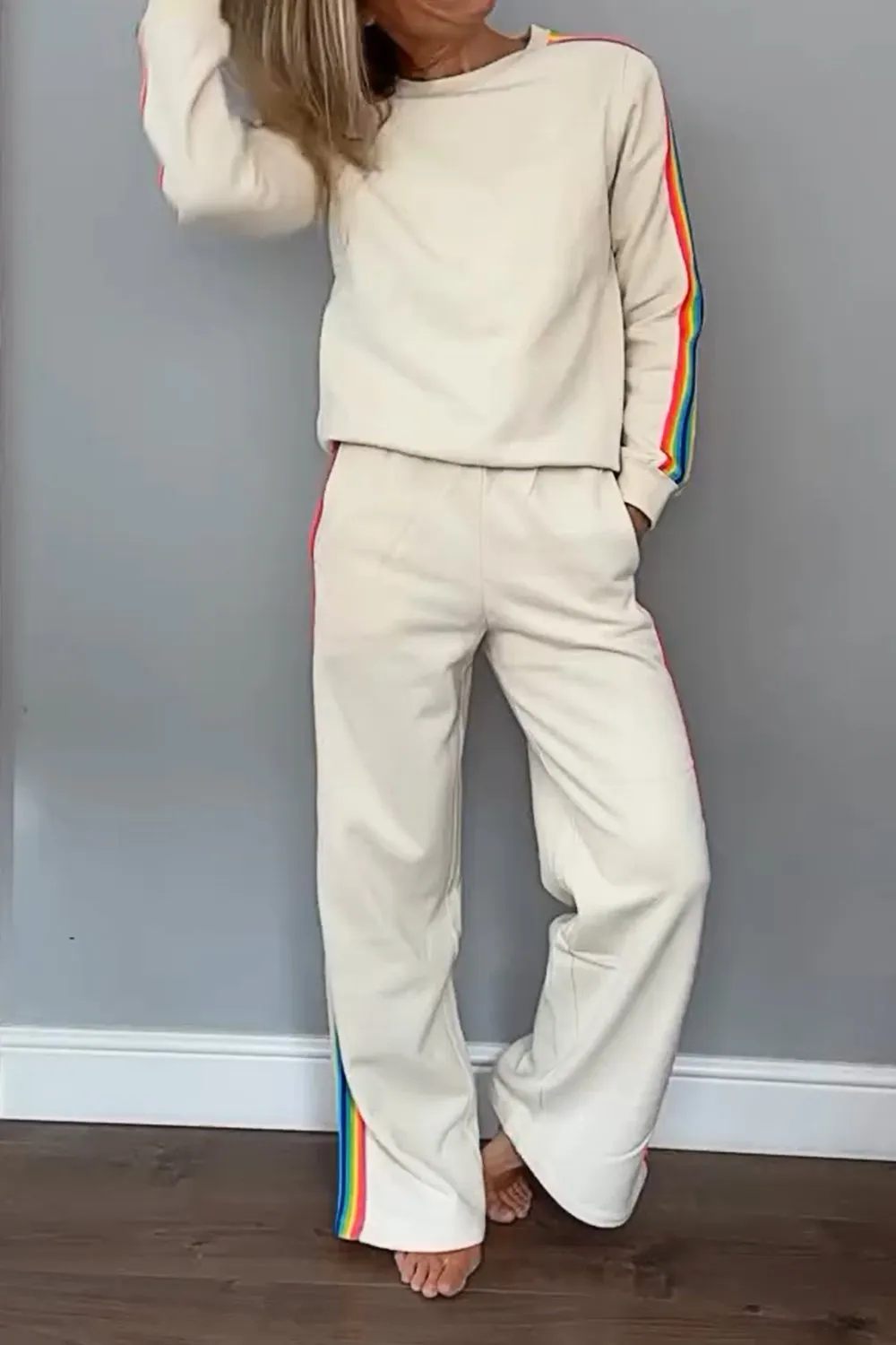 Women's Contrast Color Ribbon Round Neck Top & Pants Two-piece Set